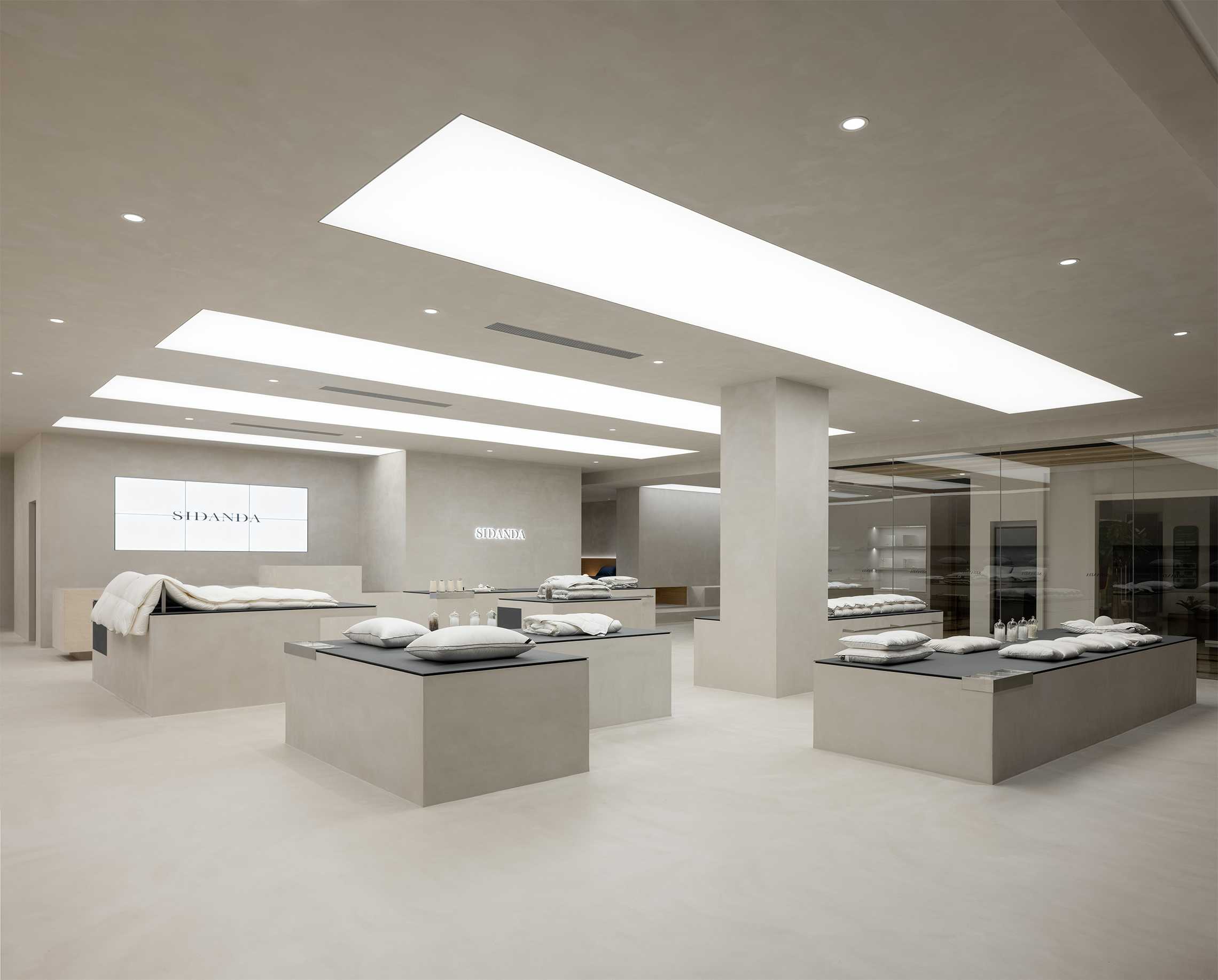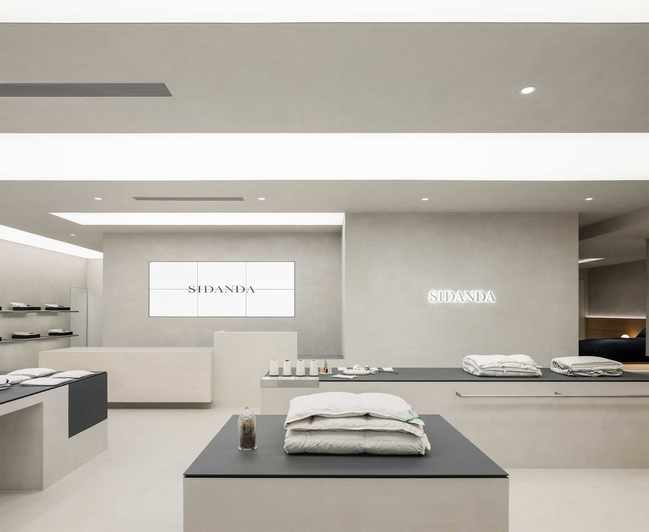 SIDANDA是一个专注于高端鹅绒床品与睡眠环境倡导的品牌。他们凭借纯粹的产品态度和定义未来的决心打造了最受欢迎的线上品牌。在线下探索的过程中,设计师希望不仅能延续他们一贯的价值主张,同时能着眼于未来,拓展掷地有声的空间概念与更高的品牌价值,在大众心中树立独特形象。