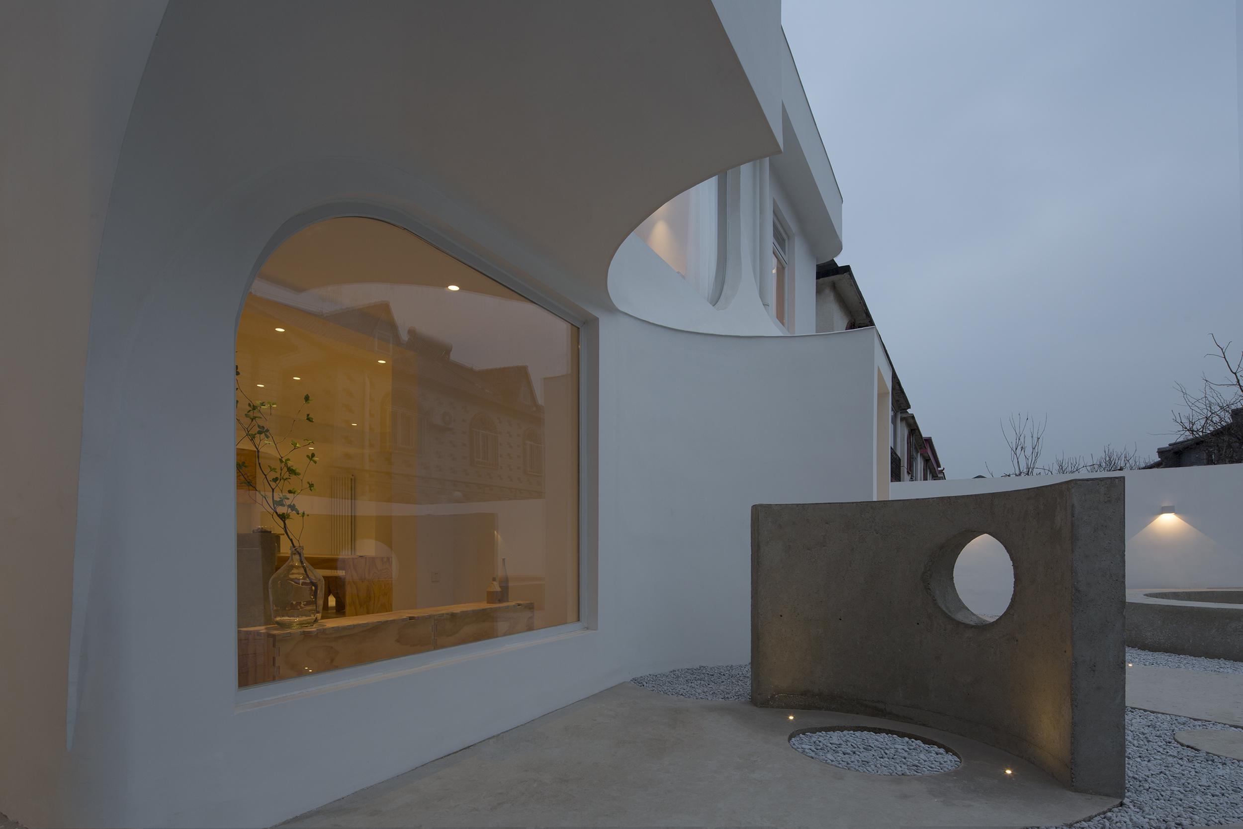 The design language of the architectural and interior is based on a quarter arc, which flows freely in the space with a rigorous attitude and increases the tension of the building by means of geometric composition. The outward extension of the building block on the facade is close to nature in a flowing posture, bringing the distance between architecture, nature and people closer. The white facade makes the building abstract and sculptural, through the rendering of white material, the boundary between the wall and the top is blurred, and the flowing space and natural light blend together, bringing people a pure experience and imagination space.