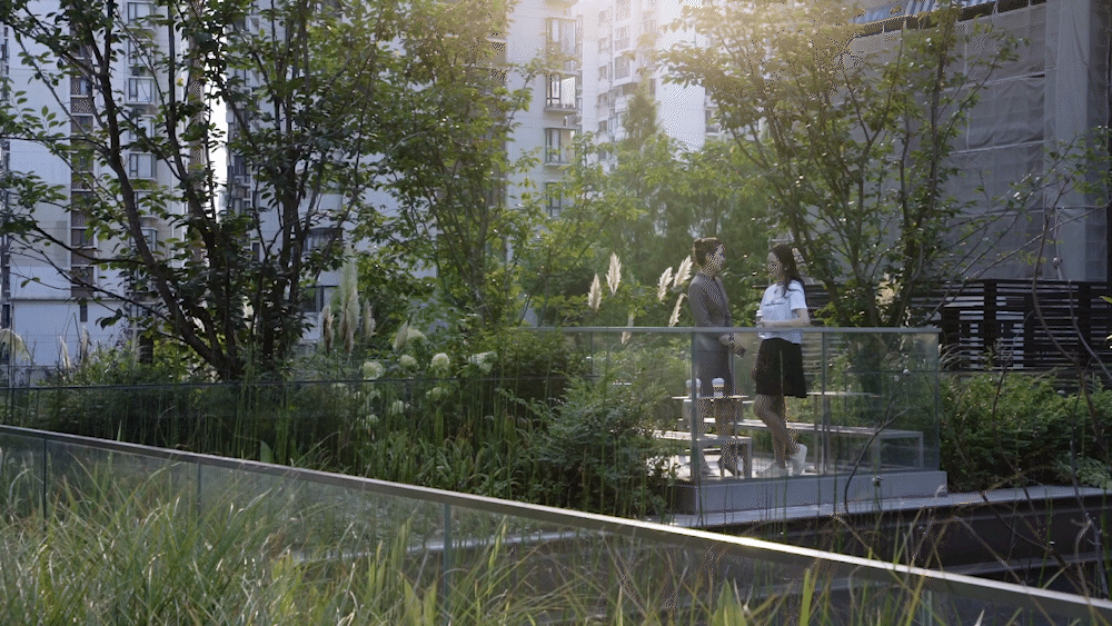 社交场景的实现依托于美好的空间品质。设计进程中,建筑师将对“高品质”的追求贯穿到边界及红线之外的地带——充足的阳光、绿意,是激发人自发停留、实现交往活动的必要条件,如忽略空间品质的塑造,则无从谈论活跃、生动的使用场景。