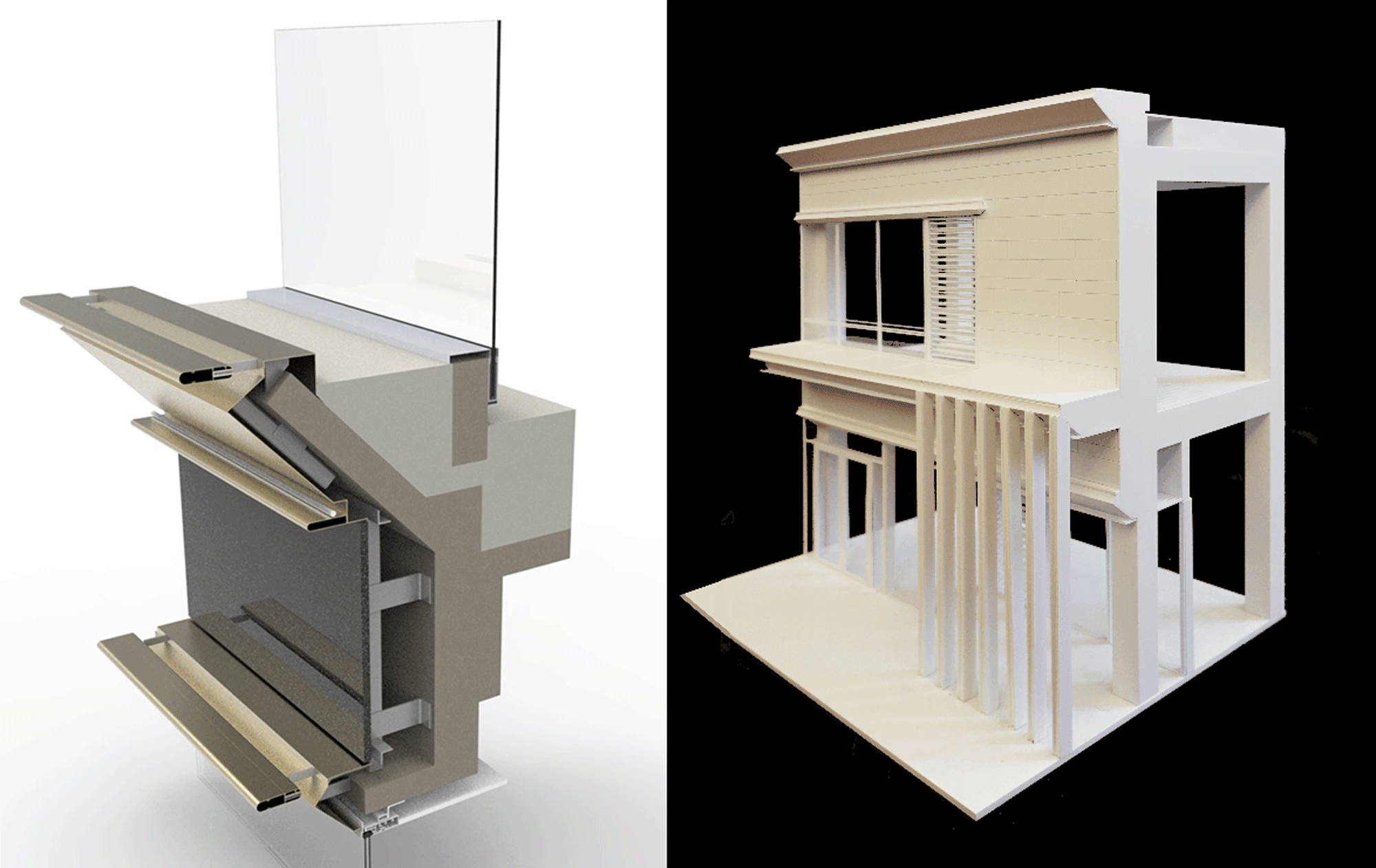 标准模块单元对横向出挑线条、窗扇、格栅等作出精细化的规定,使得各组件在满足商业功能需求的同时具有整体美感。出挑线条承担花台的作用,一层线条兼具雨棚功用。商业标牌位置、泛光照明灯具位置被妥善整合于立面体系之中。