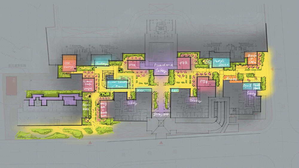 商业配套的成功离不开精准的运营。基于“花园式商业街”的空间结构,项目试图为社区商业配套的运营面貌探索新范本。7000㎡的社区配套包括生鲜超市、健身房、老人日间照料中心、青少年活动中心等;2000㎡的商业将容纳花店、书店等其他丰富业态。在设计的过程中,建筑师虽未直接参与商业运营工作,但基于专业视角与仁恒置地商业策划团队紧密沟通合作,为策划案提供充分的空间支撑。