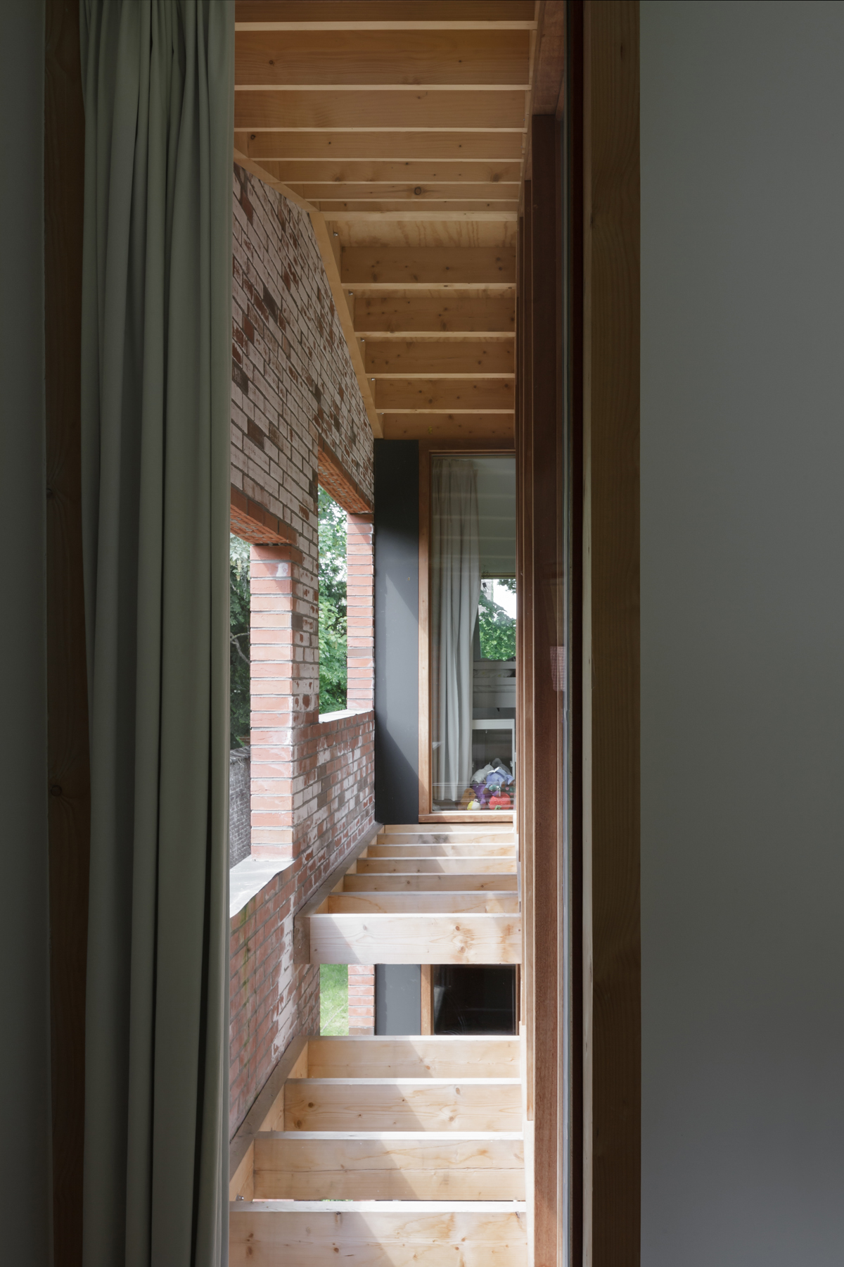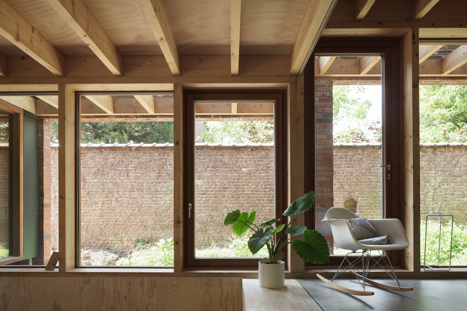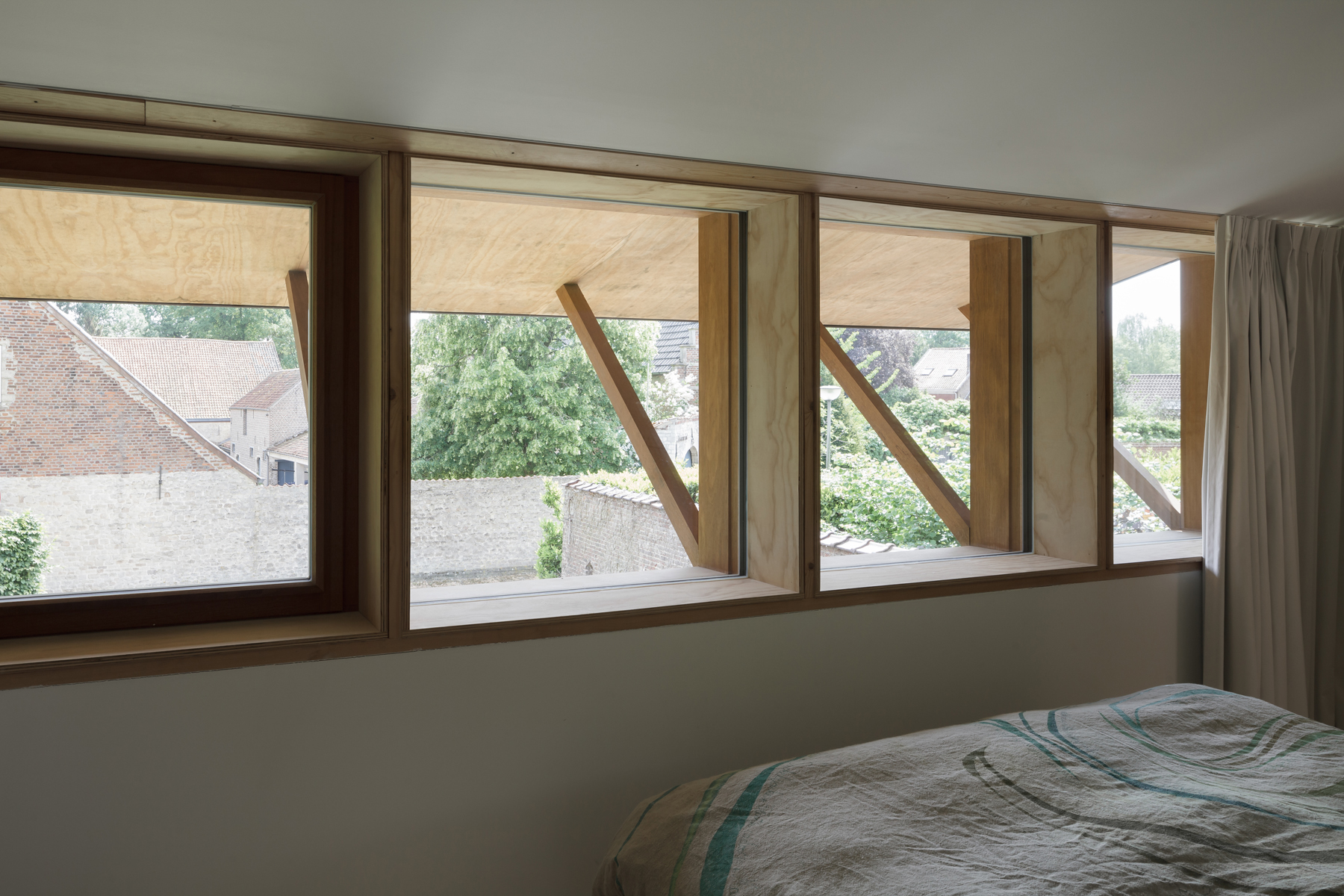 The simple house constructed in self-supporting masonry engages in a familiar dialogue with the village. The house reacts to its surroundings and the structure incorporates aspects of it through a precisely articulated tectonic expression. The layered, extremely recognizable setting reminds us of a bygone era: an archetypal village in Flanders, seemingly safeguarded from aggressive post-war housing policies and twentieth-century modernization processes. In an essentialist lecture, this project could be labeled as ‘regionalism’.