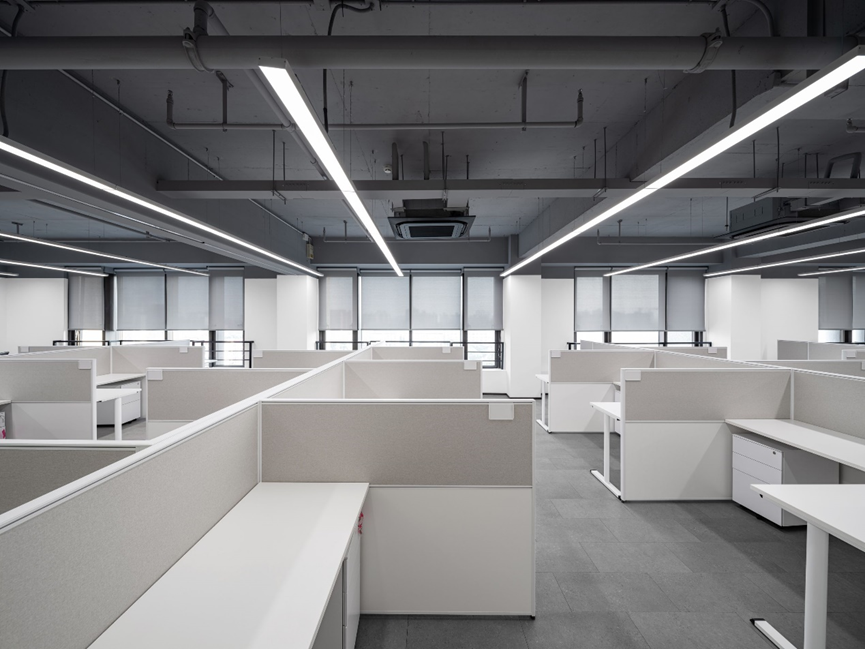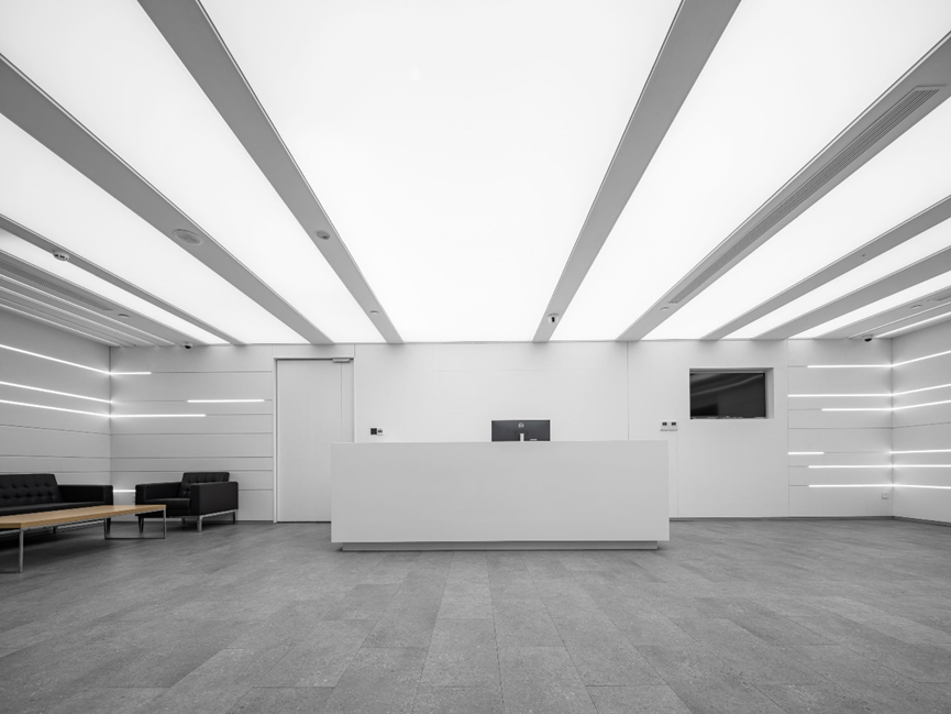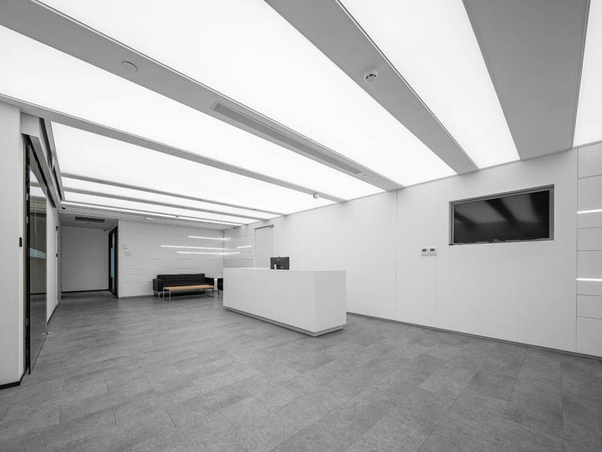 A. Light beam conduction: In the open corridor of the public area, the guide of the light beam from the ceiling not only leads to the traffic flow, but also connects the separate working areas, seemingly independent, yet united as one.