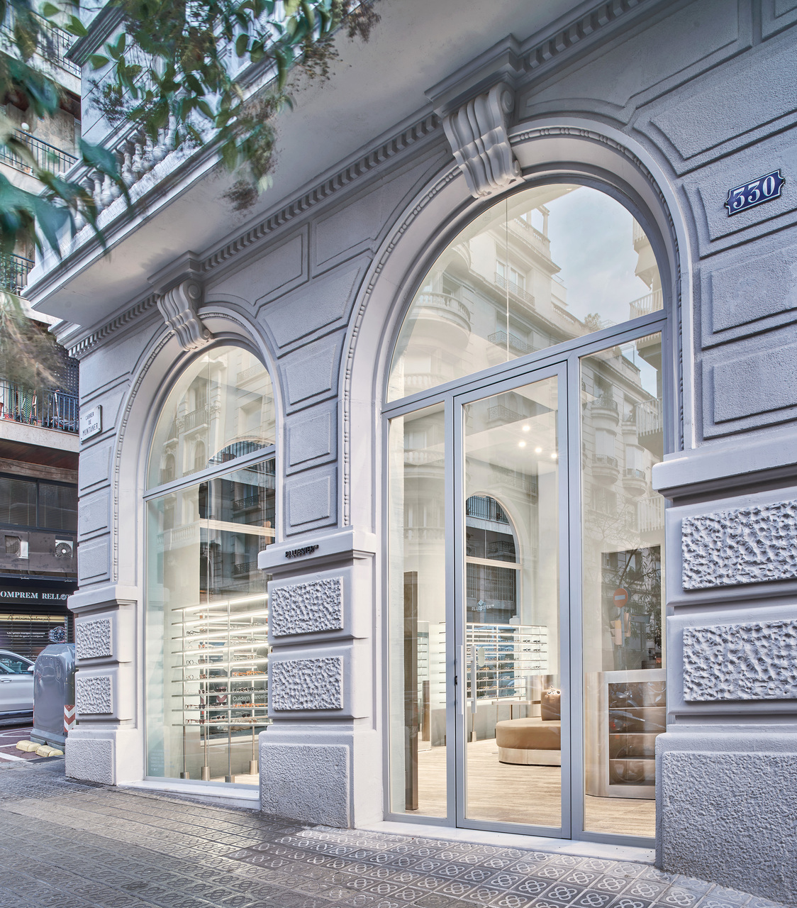Following recent openings in Madrid and Barcelona, the architecture and interior design studio El Departamento launches the latest optical boutique for PJ. Lobster in the Eixample district of Barcelona. In an ancient noble building with eclectic Catalan style from the early 20th century, the space harmonizes the high-tech nature of the brand with a strong rationalist character, blending minimalism with substantial materiality. It is a dual space that embodies the maturity point El Departamento has reached.