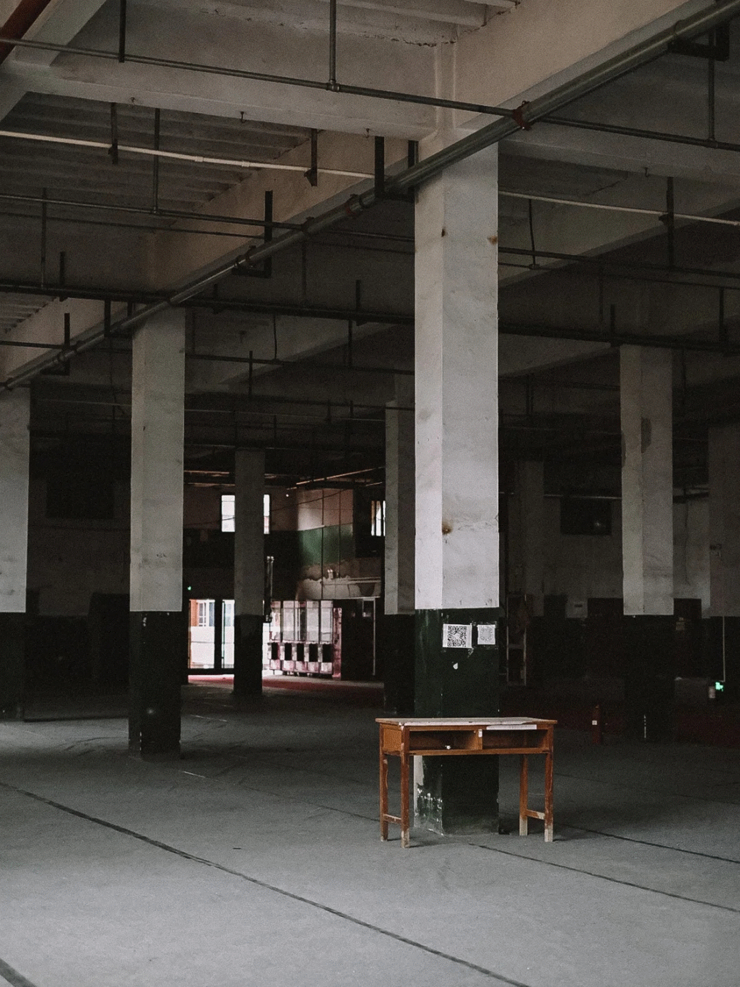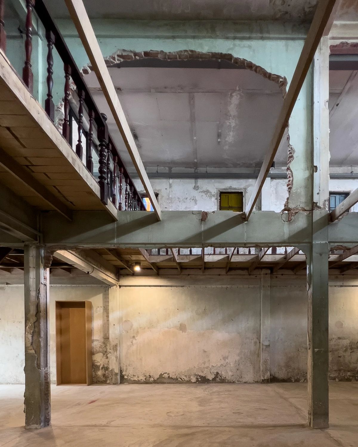 老菜场在升级改造过程中没有一味地推翻重建,而是保留了西安平绒厂的原有建筑外立面、结构以及内部空间的颓败基调。三楼的废旧厂房改造成了如今免费开放的艺术展区,这里不定期会举办各式不同主题的展览活动,已经成为新晋网红打卡盛地。