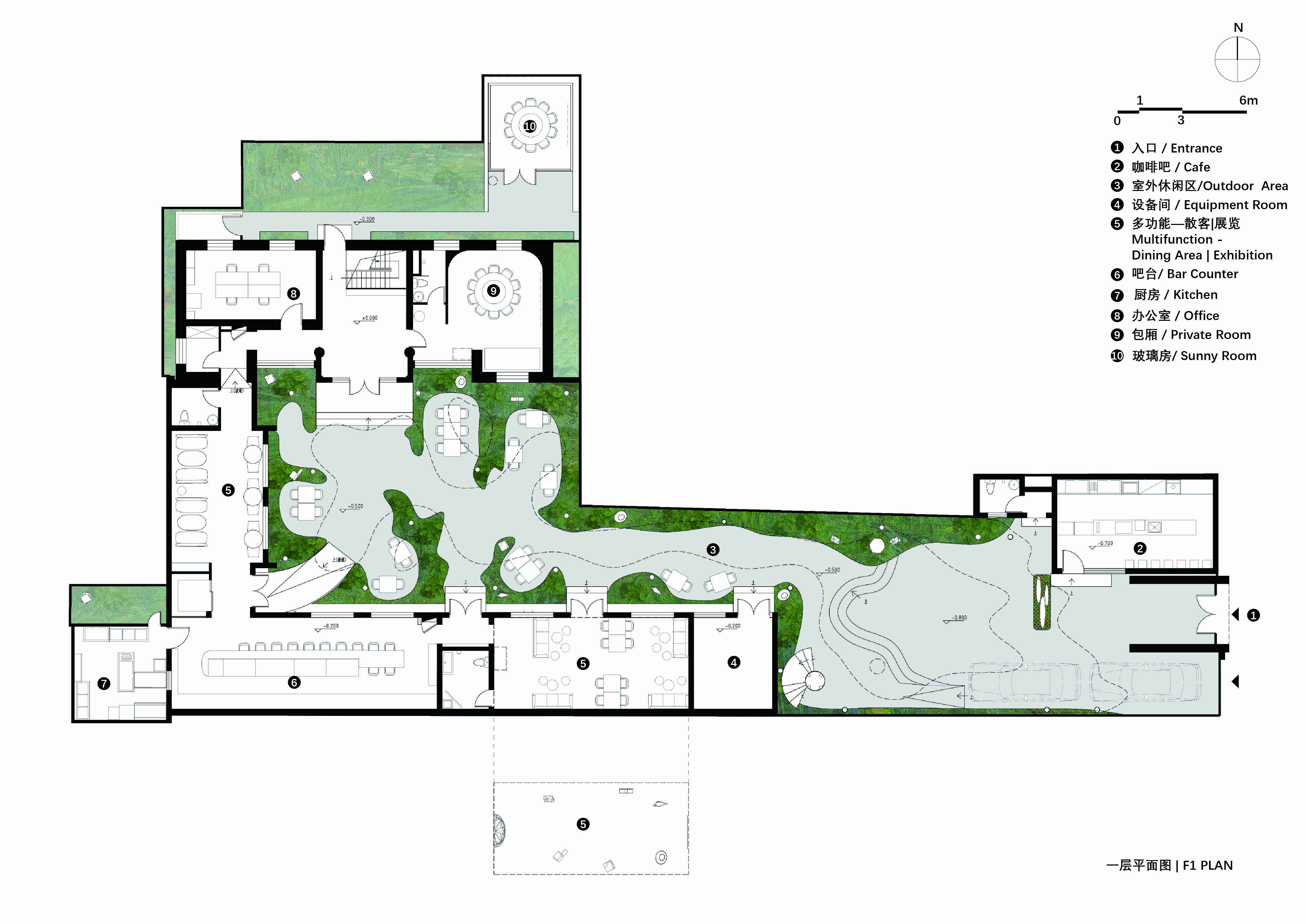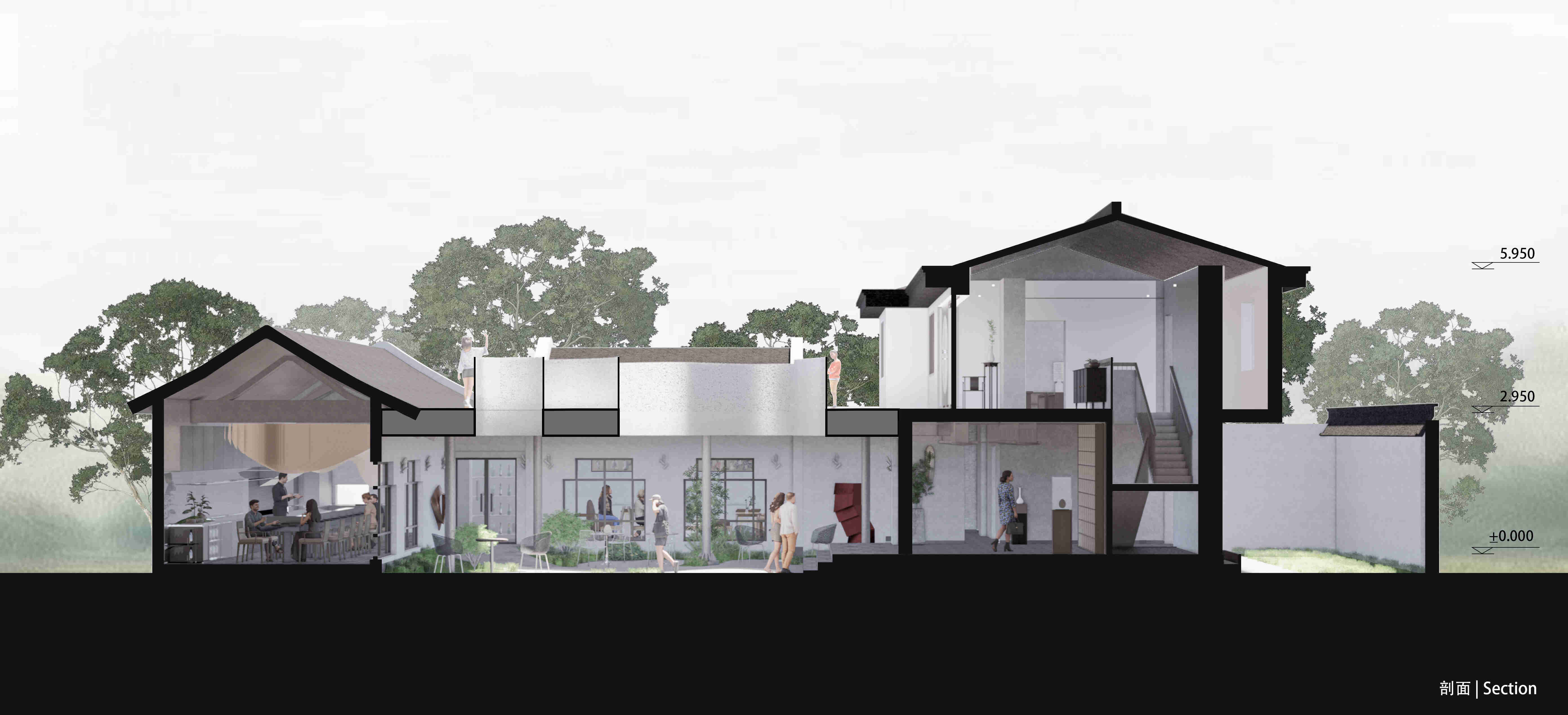 功能 Function:小型综合体 Mini Mixed-Use(咖茶、餐厅、中式生活用品、画廊、国学馆、茶室)