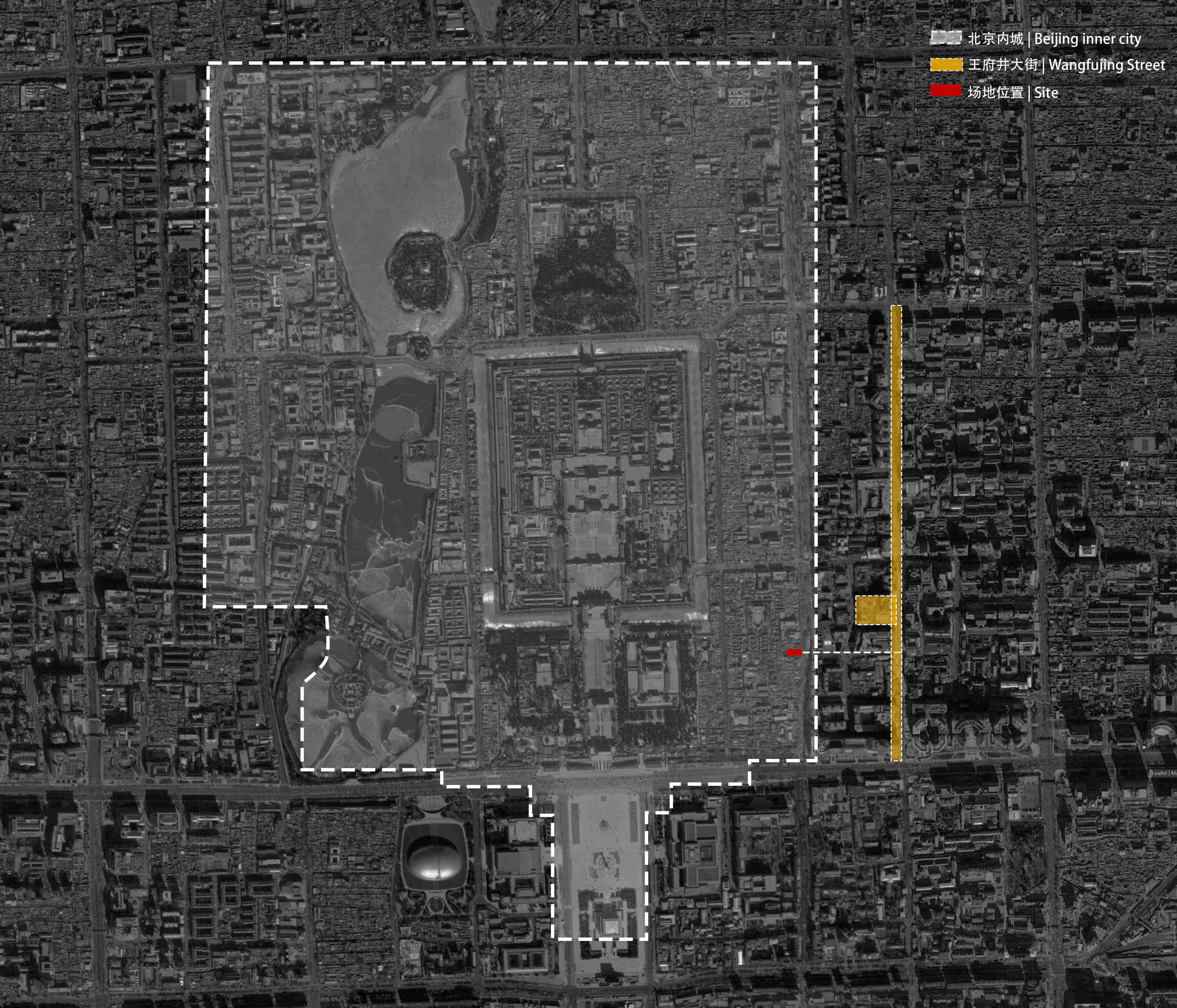 The project is located in the centre of Beijing, within the immediate surroundings of the imperial palace which would have housed the royal extended family in its midst historically. In the 1990s, after multiple renovations and the expansion of roads, resulting in a smaller isolated irregular courtyard with a mix of old and new decorative styles that lacked unity or purpose, with only the shadows of its previous identity maintained in its spatial sequence. Consequently, just one block away is the central commercial area WangFuJing which is a major bustling hub of the city.