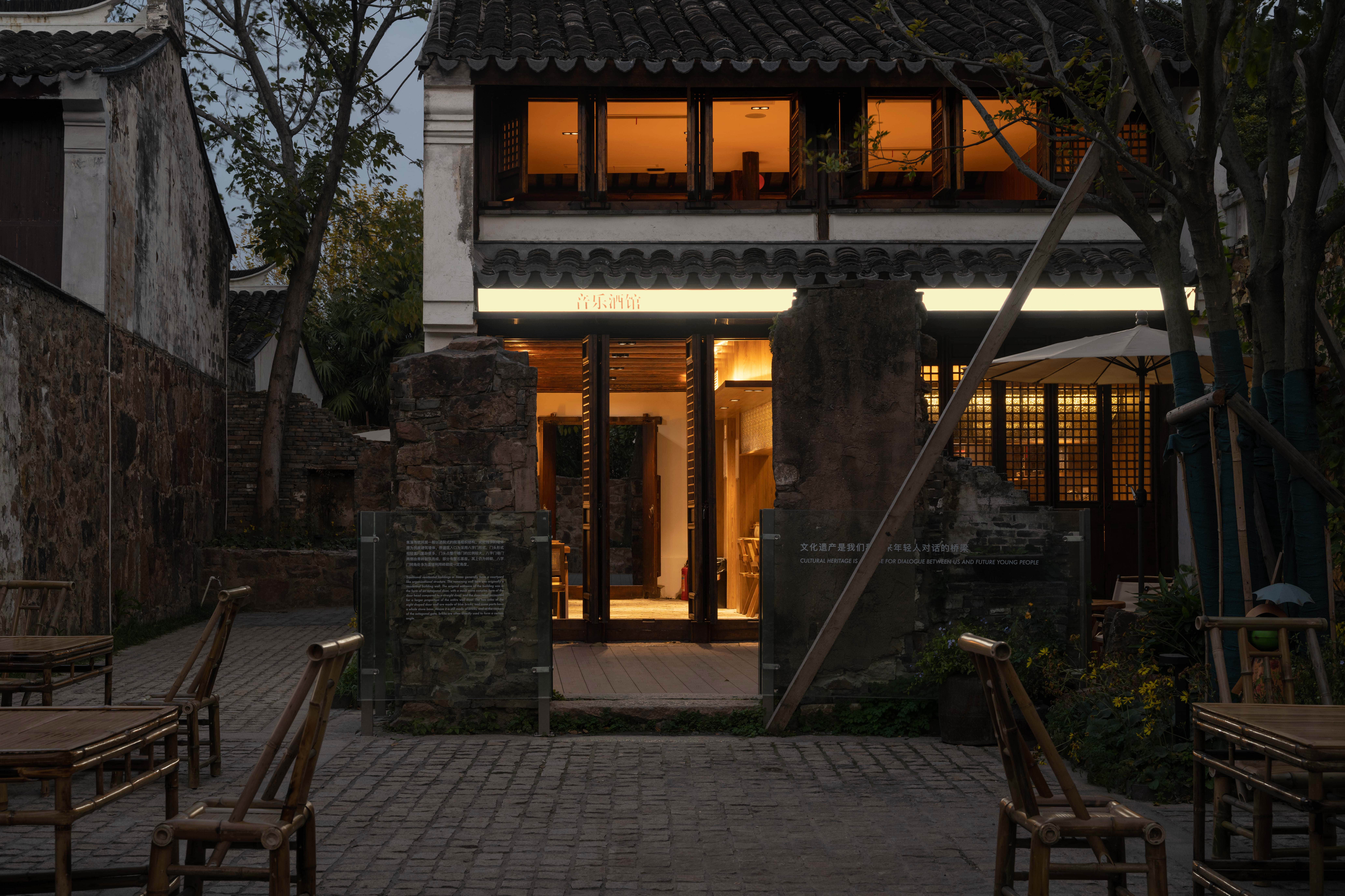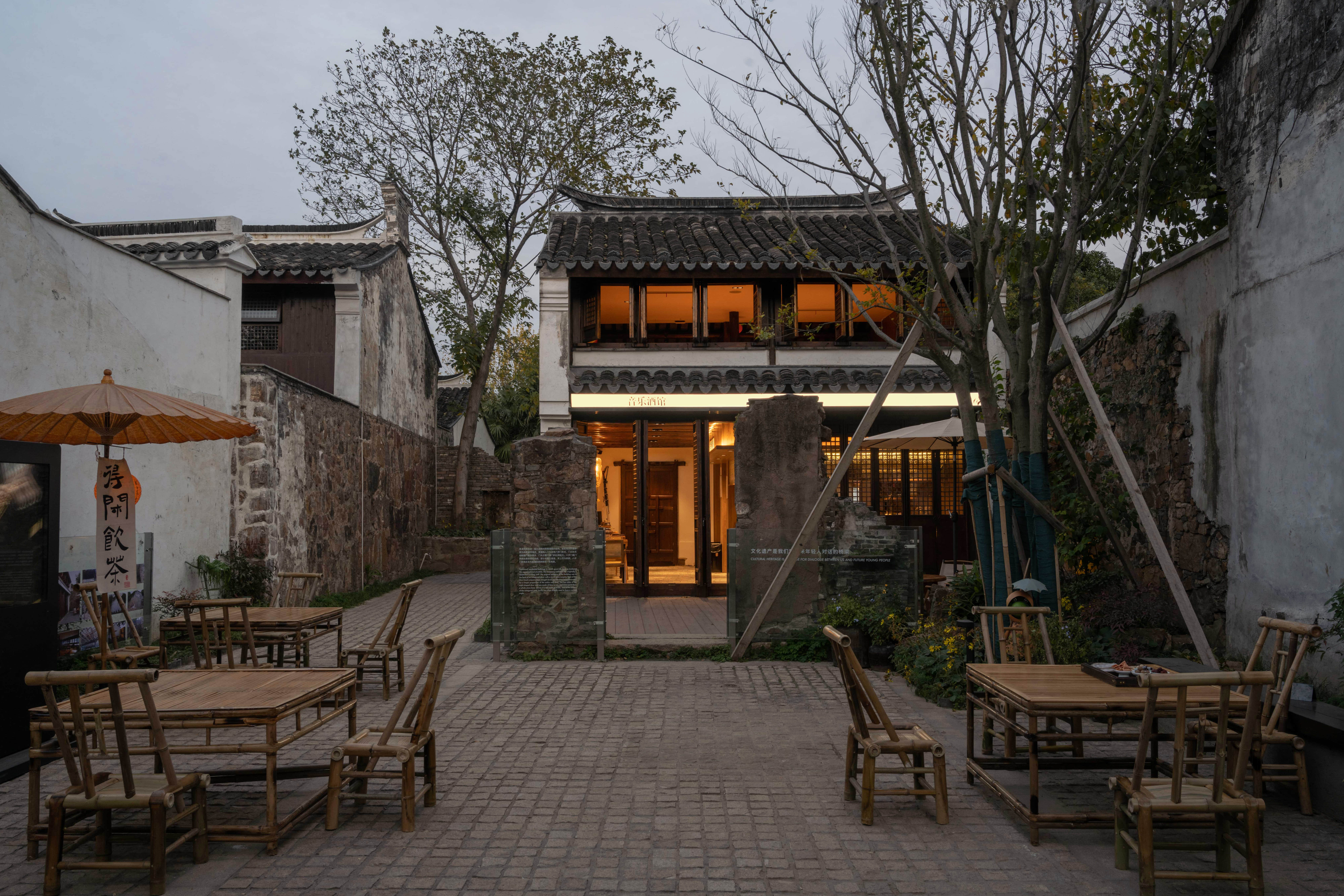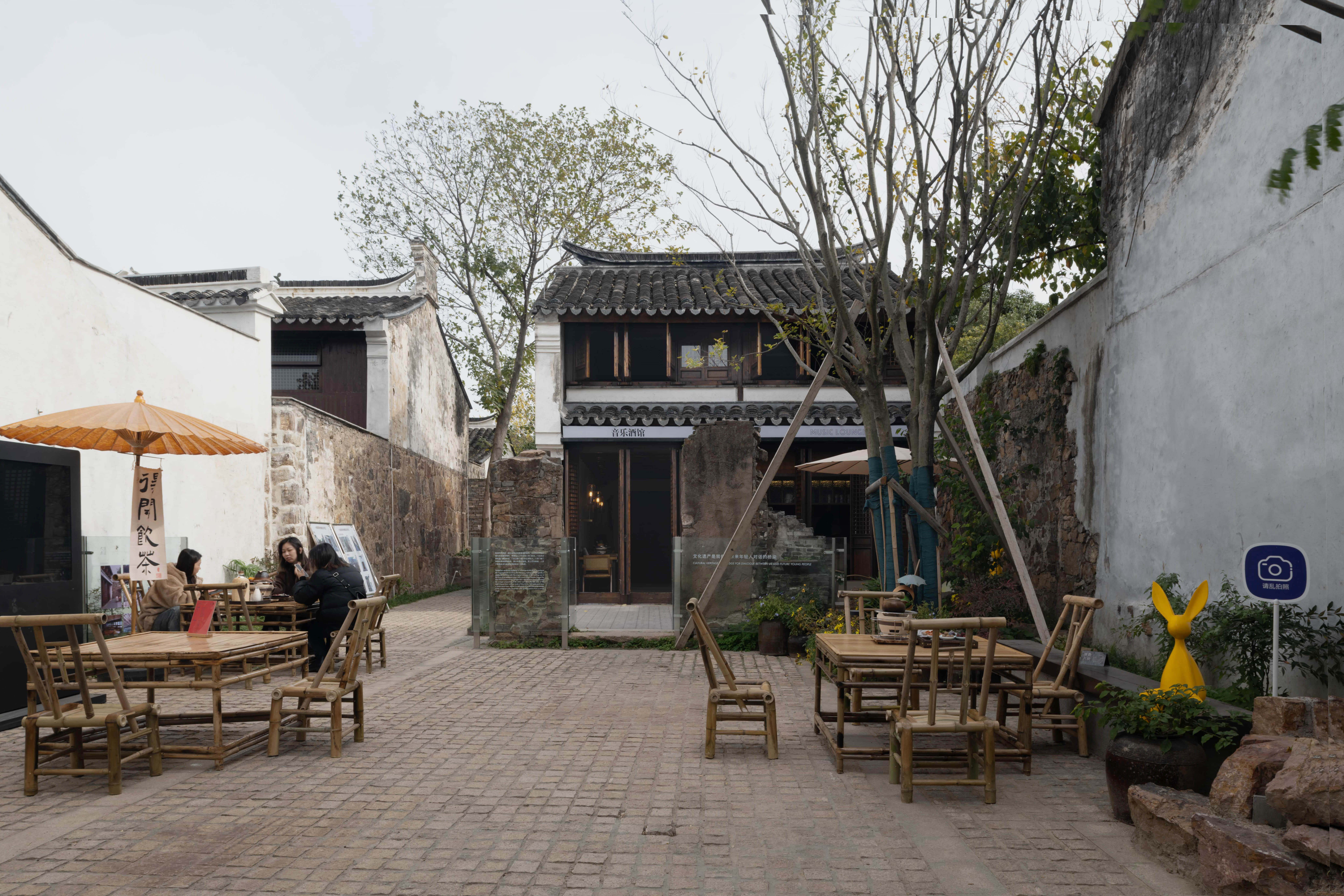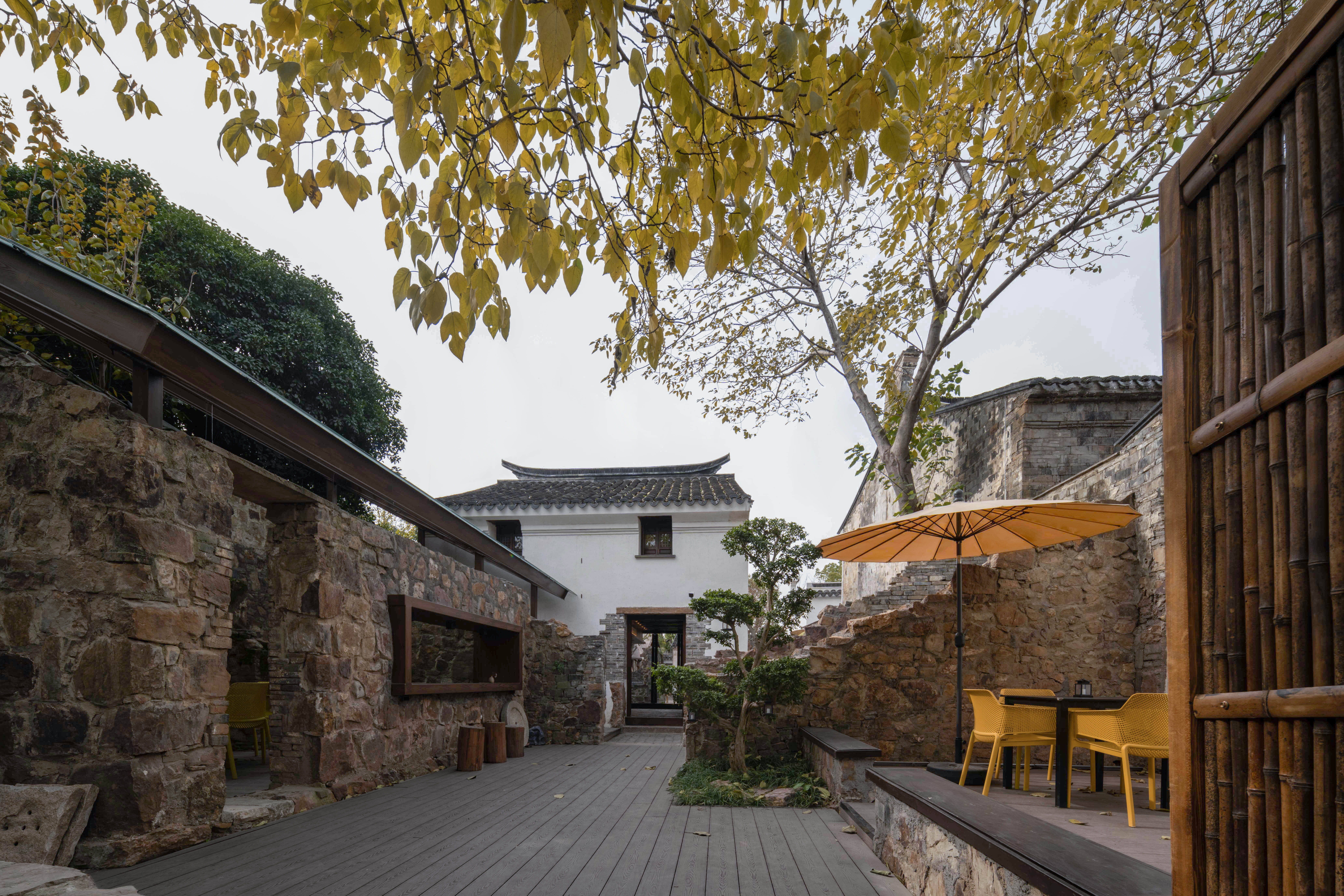 是家小院位于常州焦溪古镇的核心区,原为一处三进民居,由于大部分建筑已坍塌、损毁,现场仅保留一个主体建筑以及残留的黄石半墙。对历史建筑的保护、修缮、活化和利用,是对抗时间和失忆最有效的一种方式。在我们介入前,东南大学建筑设计研究院已对遗留建筑进行了修缮。本案设计希望将小院打造为一个可以连接古今的小酒馆,让一度成为废墟的小院重新焕发生机。在飘着酒香的小巷里逛一逛这里的老房子,走一走康熙年间保留至今的石板路,午后坐在黄石半墙的小院子里欣赏秋色,围炉煮茶,将会成为人们体验这座水乡古镇的极佳方式。