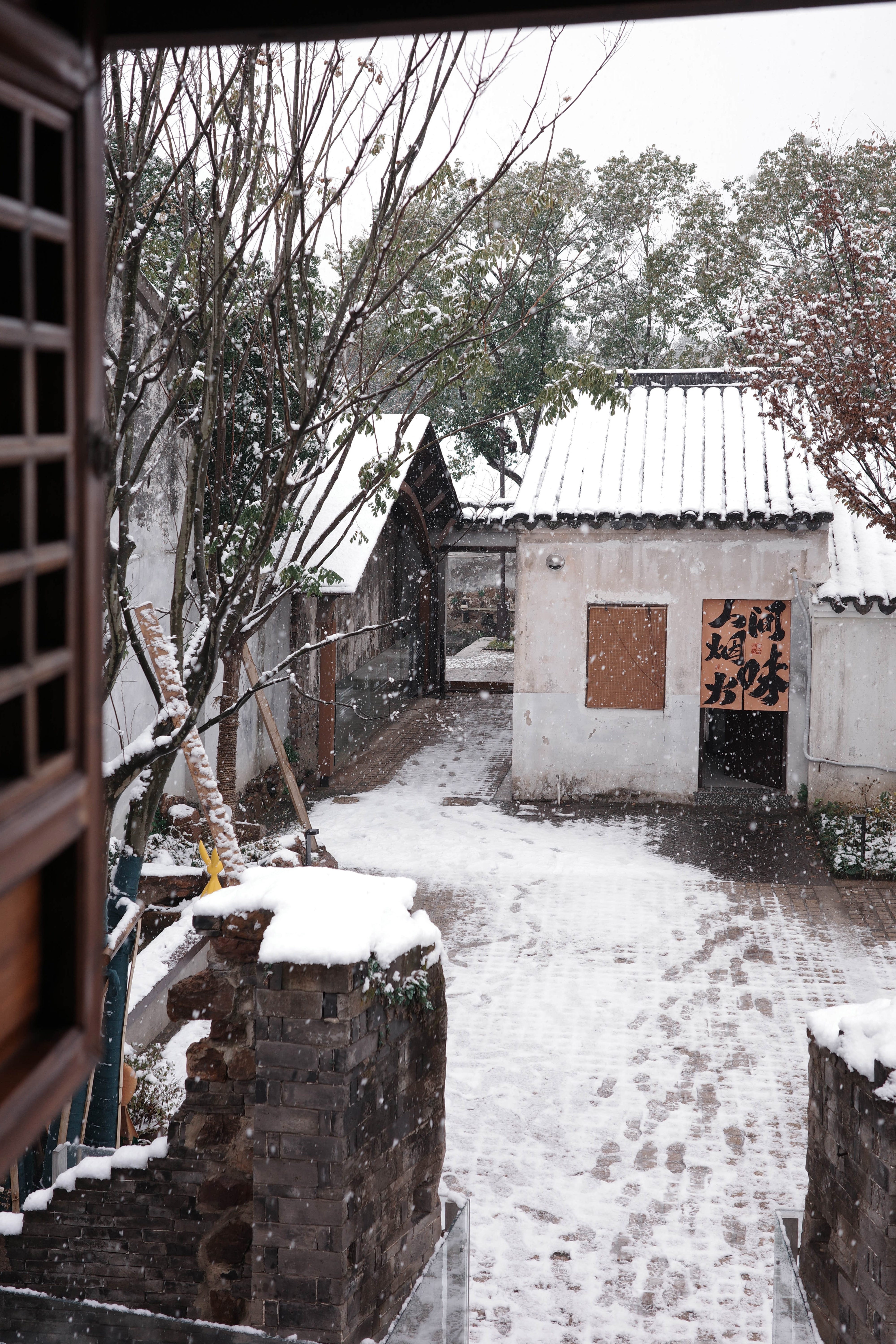 小院入口对保留的建筑墙体进行保护与展示,六间五柱,大木构架为抬梁穿斗混合式,具有江南民居建筑的典型特点。