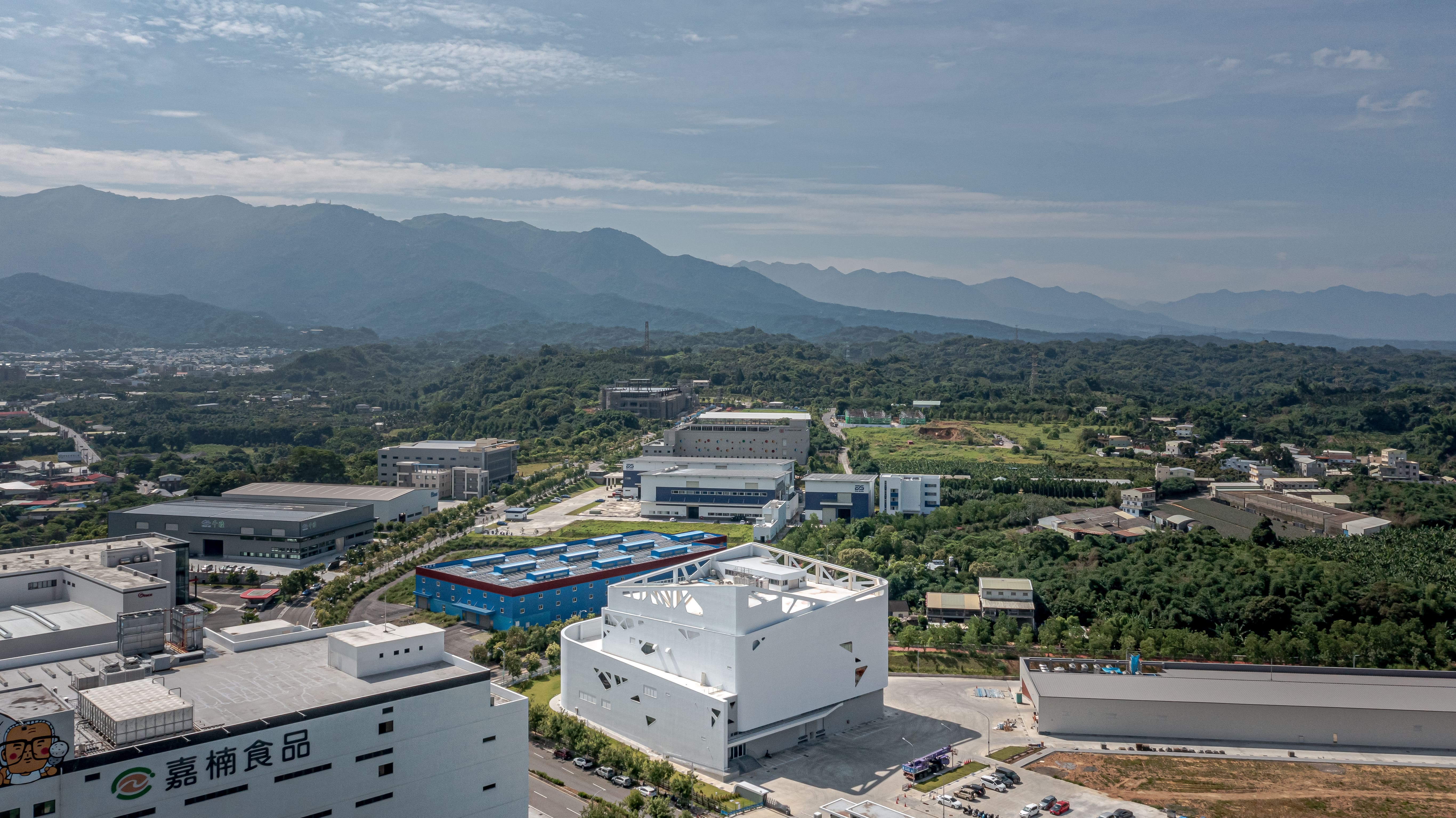作家余光中说:“北迴归线是一条敏感的琴絃,因太阳的回顾,而奏出乐章。”本案基地坐落琴弦“嘉义”之上,于阿里山山脚边与玉山遥望。东侧与南侧有山林环绕,西侧与北侧则与园区主要道路联通,建筑位置紧邻主要十字路口,因此建筑设计上不只考量与品牌意象的相互辉映,更期许能与在地意象有所连结对话。