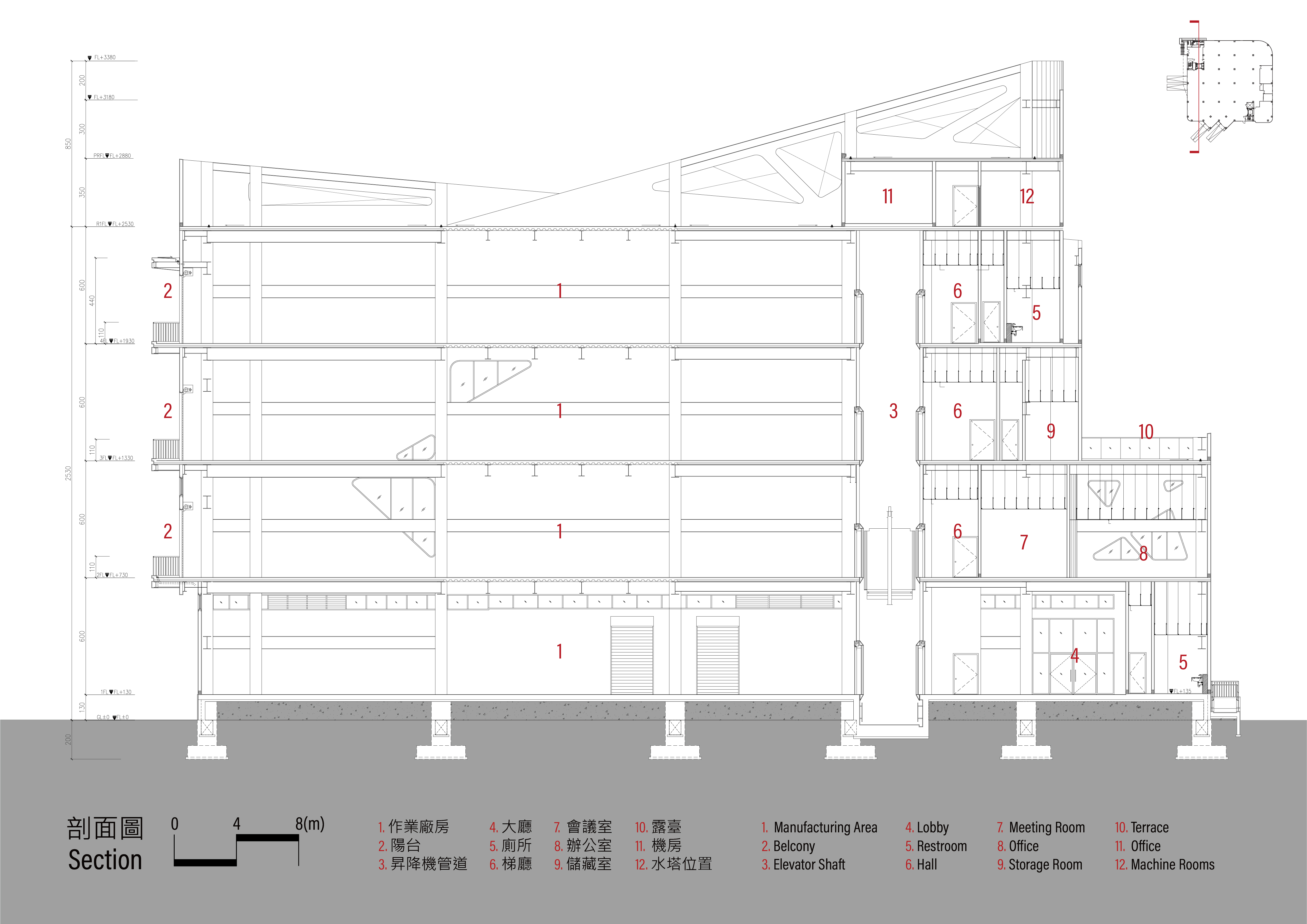 剖面图 ©公羽山松建築師事務所
