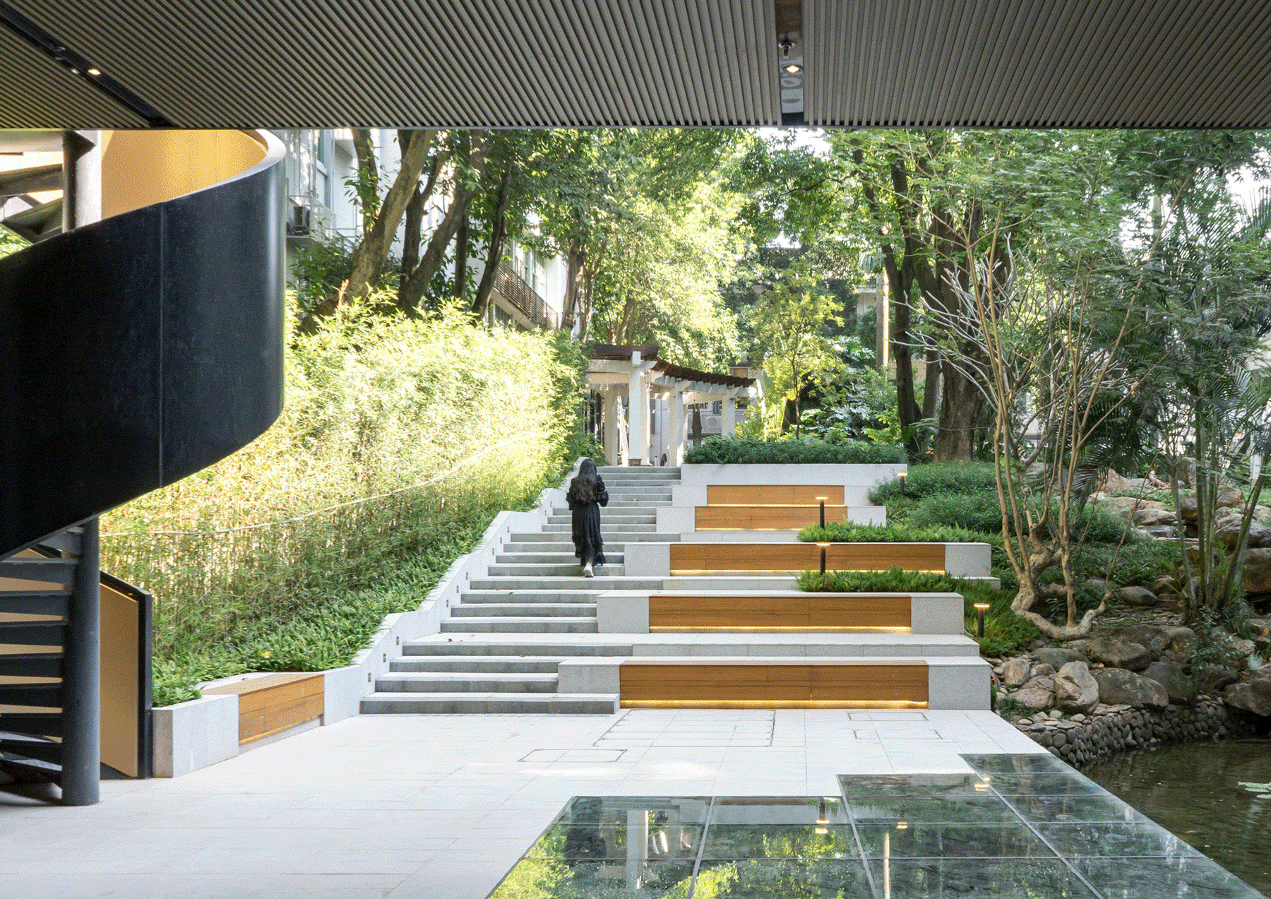 这一系列的场景转折串联起了建筑、室内与景观。犹如一场漫游,将人的身体在游走和停留中不断切换,视线和景观也在过程中逐步变化。最终以适度的轻型介入在环境中创建一种园林般的体验。