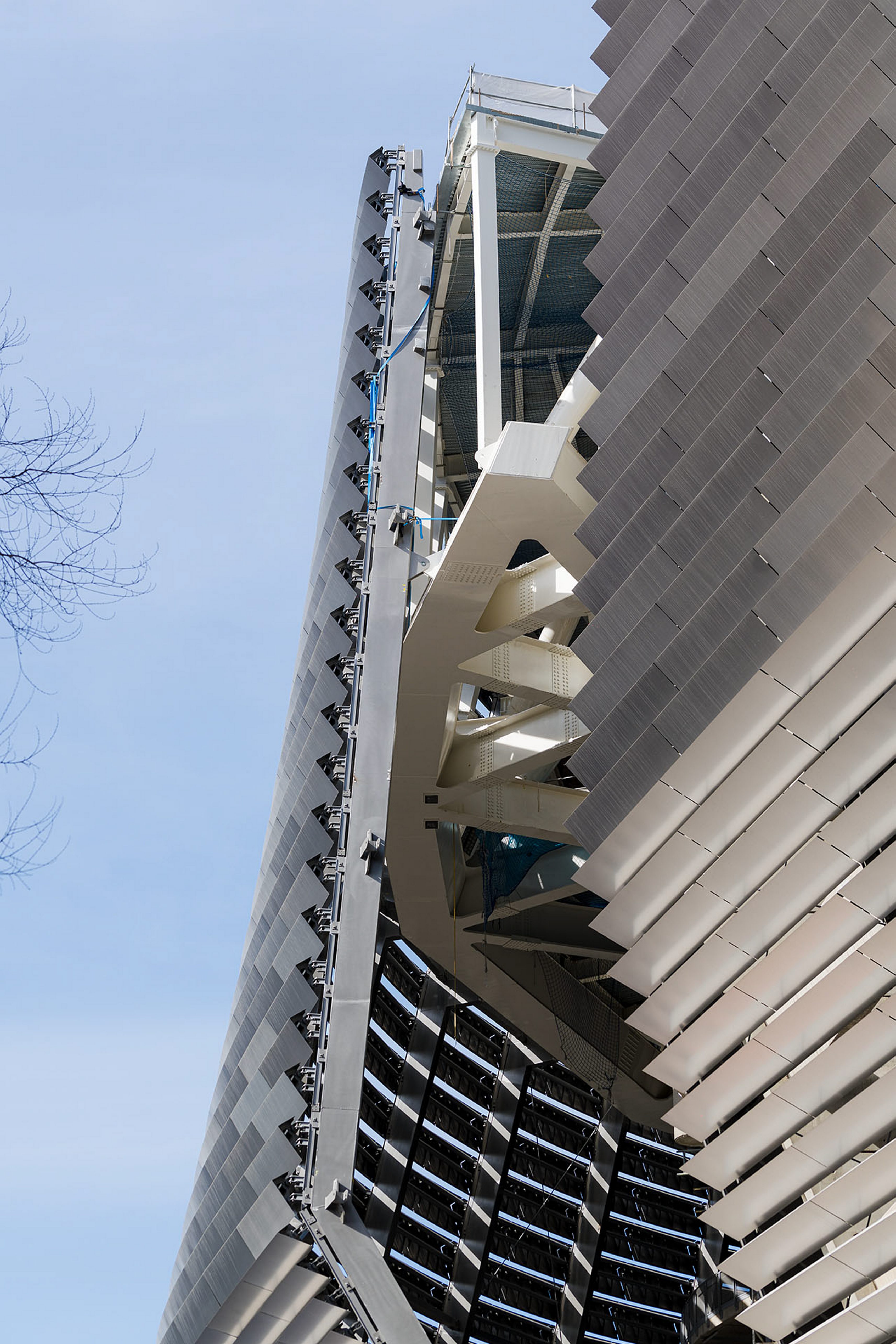 The geometry of the outer shell follows the principles of form-finding and form-making, taking into account both functional considerations and a desire to give the stadium a new sculptural form. Curved stainless steel louvers give the Bernabéu a whole new character and emphasize its status as a Madrid landmark. The horizontal gaps between the metal slats allow for natural ventilation of the stadium’s interior. From a distance, the metal structure coalesces into a sparkling jewel that reflects daylight in myriad ways depending on one’s angle of view.