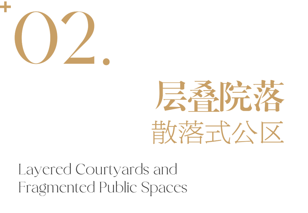 公区建筑以“天井”为核心,向天开敞,为内部引入自然光,创造内向性的精神空间。组团内部的空间关系仍以对称秩序、院落递进为基础,进一步将大空间零散化、平台化,强调空间的流动和开放。
