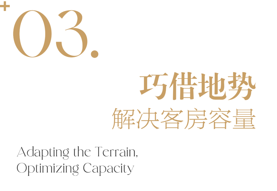 这种多样化地形为客房景观和空间体验创造了独特条件,也要求我们能够在自然适应与体量优化之间寻求平衡。