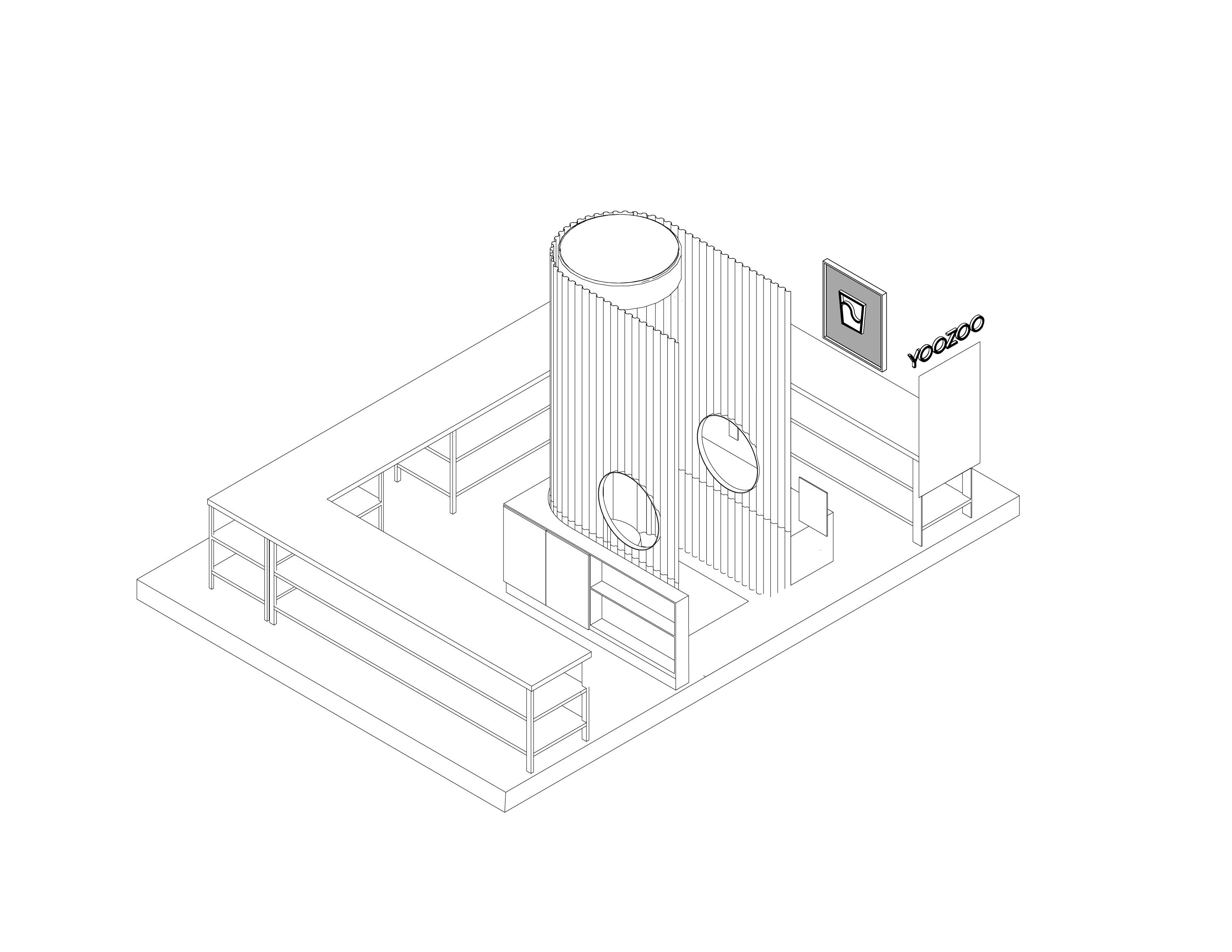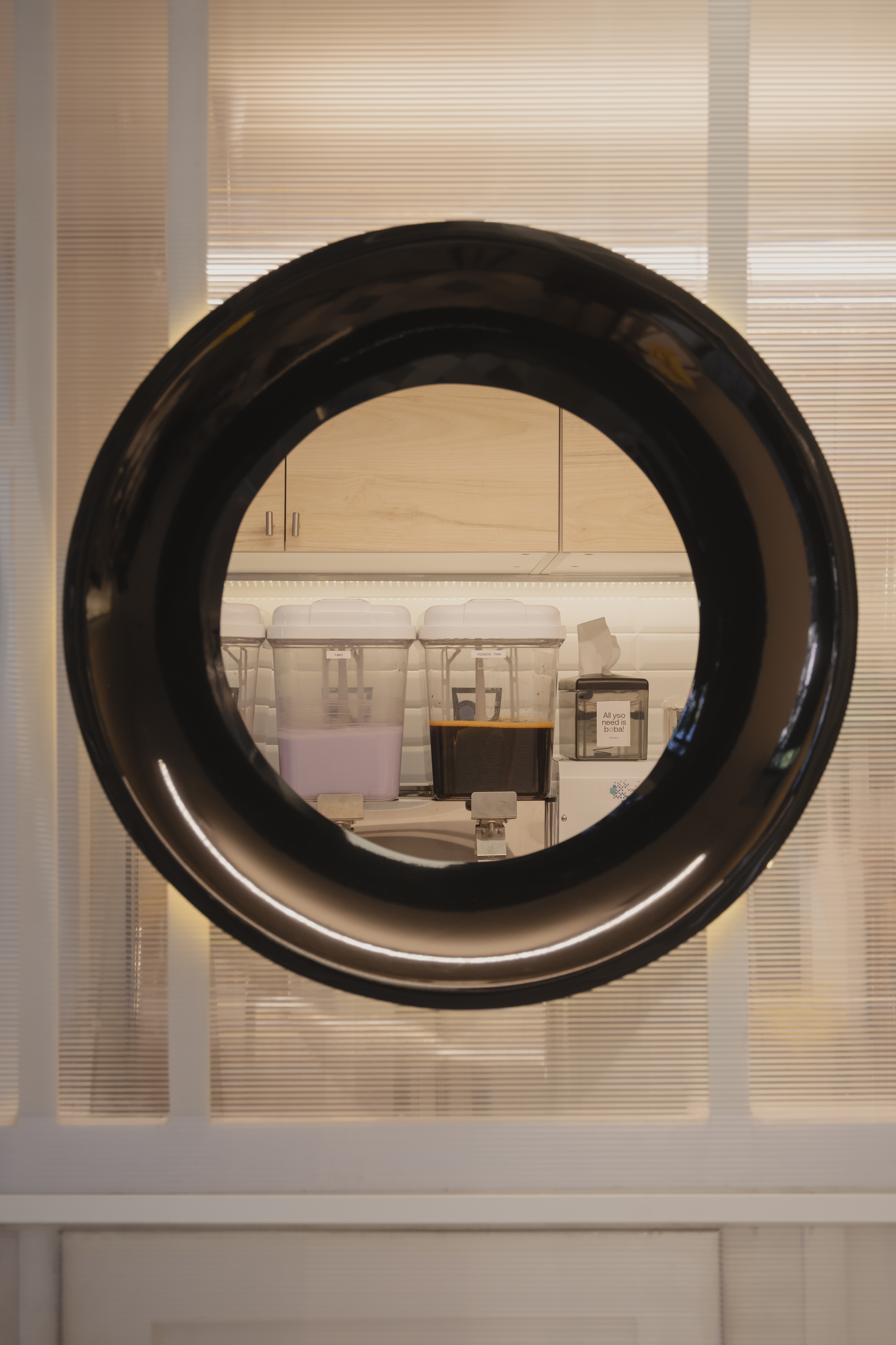 The station behind the tunnel is designed to be efficient, with a streamlined counter and all the kitchen equipment. When customers pick up their orders, they are invited to embark on their next adventure with Yoozoo. With each sip, customers embark on a sensory journey that extends beyond the walls of the store, making it a refreshing destination in the bustling urban landscape of Mexico City.