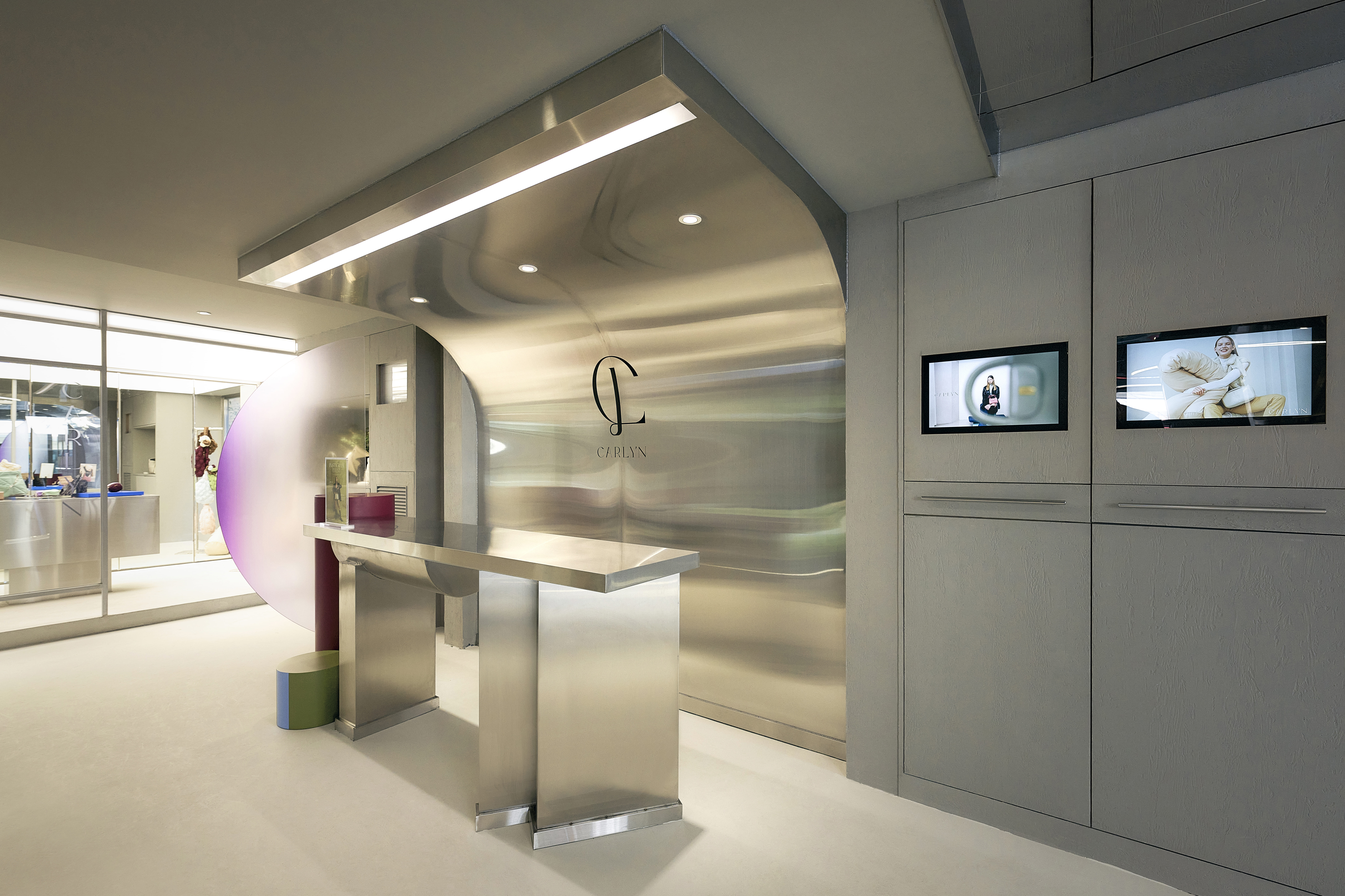 mirroring steel coats carlyn showroom's fluid curved interiors in seoul
