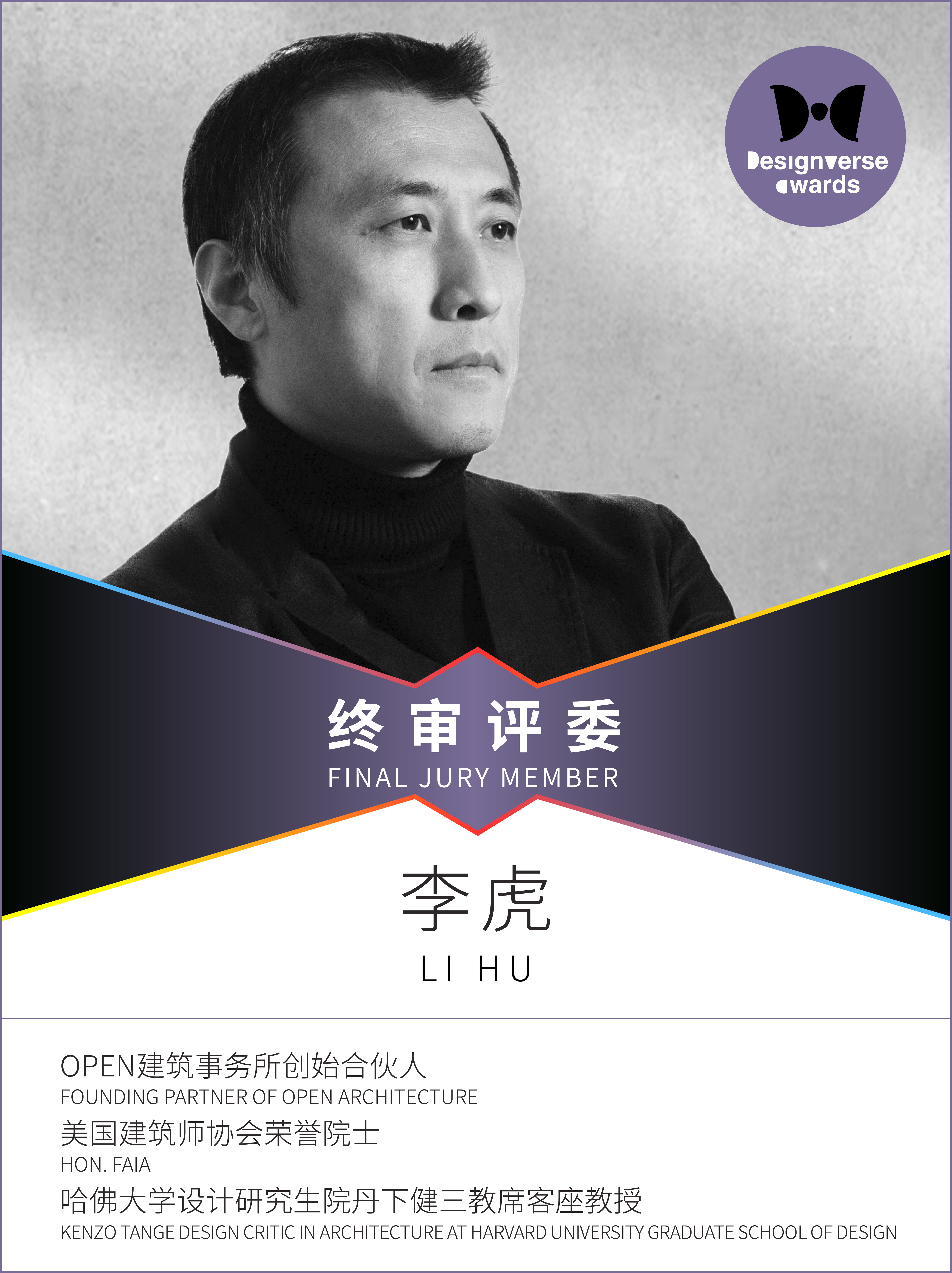 Li Hu, Hon. FAIA, founding partner of OPEN Architecture, Kenzo Tange Design Critic in Architecture at Harvard University Graduate School of Design, visiting professor at the Tsinghua University and China Central Academy of Fine Arts, former partner of Steven Holl Architects, and director of Columbia University GSAPP’s Studio-X Beijing. LI received his B. Arch. from Tsinghua University in Beijing in 1996 and his M. Arch. from Rice University in 1998. LI Hu has been the recipient of “50 under 50: Innovators of the 21st Century”, GQ Magazine’s “Architect of the Year 2014 and 2019”, ICON Magazine’s “Future 50”, and OUTLOOK Magazine’s “Creative Icons of the Year”.