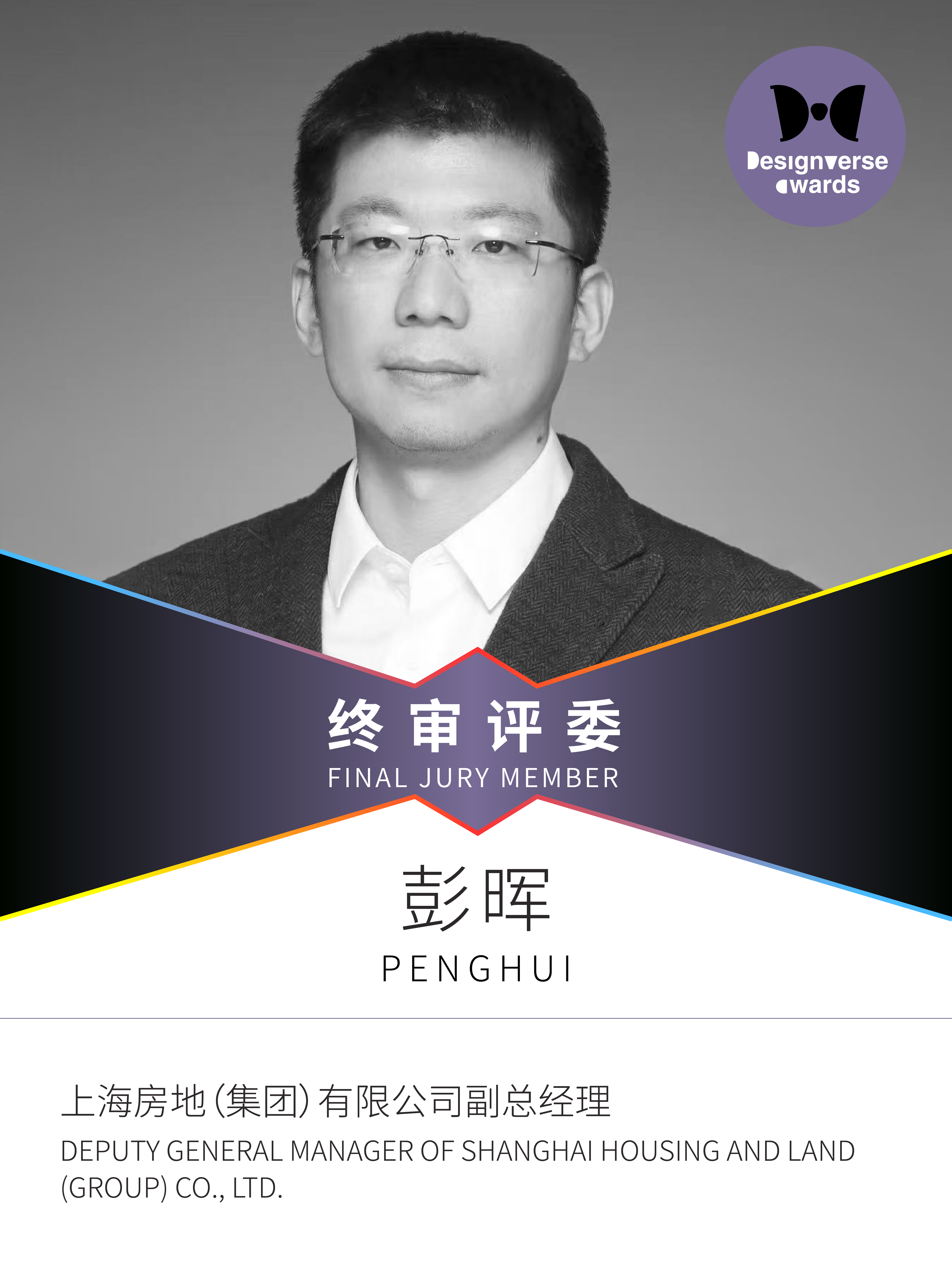 Peng Hui, a certified urban and rural planner and certified engineering consultant (investment), currently serves as the Deputy General Manager of Shanghai Housing and Land (Group) Co., LTD. and the Project Leader of Zhangjiang Shang (Chairman and General Manager of Shanghai Quancheng Development and Construction Co., Ltd., Deputy Chairman of Shanghai Chengxin Development and Construction Co., Ltd.). He has participated in the preliminary planning, design, and management of regional development projects such as Hongqiao Hub, Lingang New Area, and Sanlin Wedge Green Space. He has been awarded the Shanghai Youth May Fourth Medal. He has published 7 academic papers and won 14 national and municipal excellent urban-rural design or excellent engineering consulting awards.