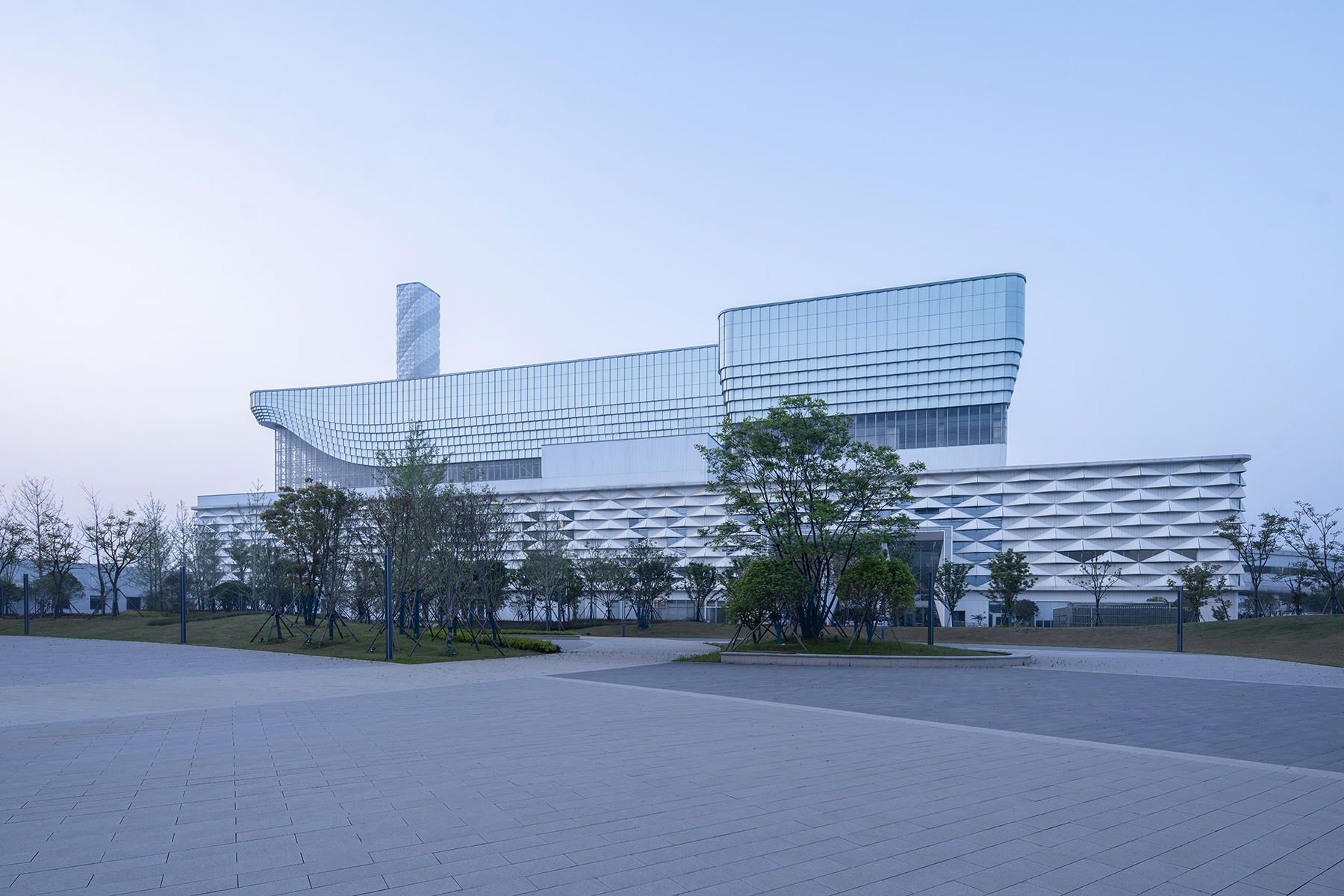 △ 裙房半镂空的三角折板幕墙 ©直译建筑摄影