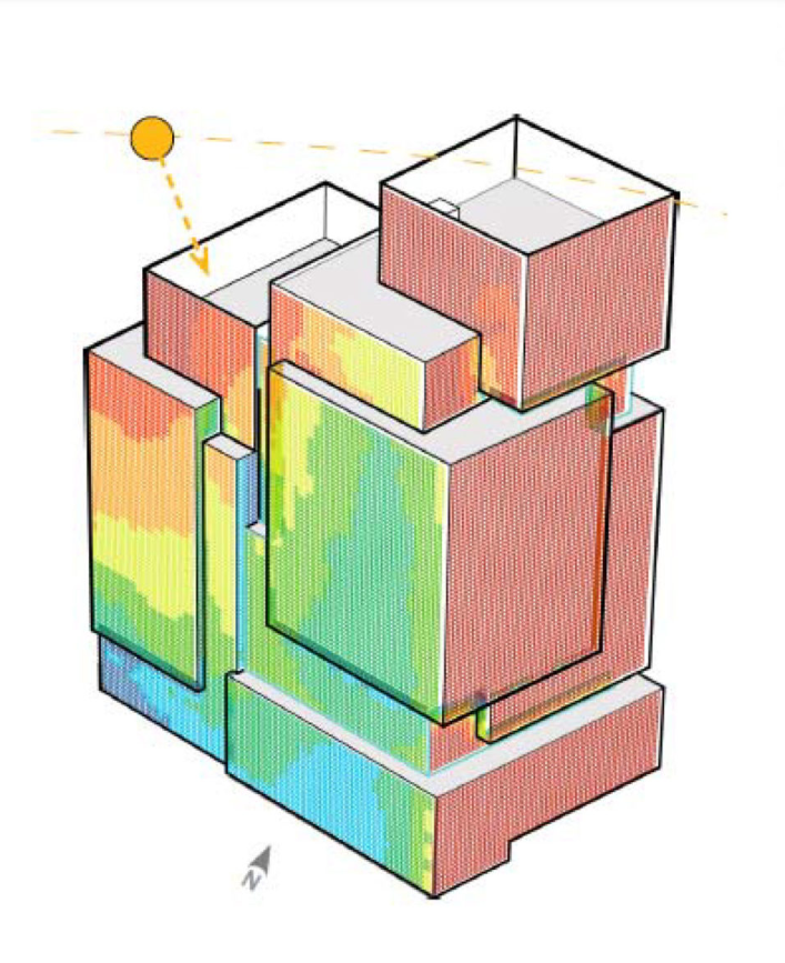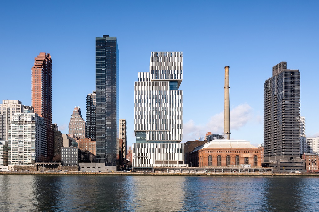 该建筑的外立面由一系列基于结构网格的单元式幕墙面板构成,包含陶土翼墙、平板、锌板及玻璃填充构件。为实现环境调控与自然光利用的平衡,设计对不透明墙面(陶土材质)与透明墙面(玻璃材质)的比例进行了优化。垂直陶土翼墙的深度与窗户尺寸均根据建筑朝向及内部功能需求进行差异化设计。最终呈现的 “响应式外立面” 不仅能有效减少太阳辐射得热与眩光,还能确保室内人员享有充足的自然光,同时可眺望东河与城市全景。通过在整个建筑中营造自然光通透、城市景观可见的空间效果,外立面与建筑体量设计充分契合了纪念斯隆・凯特琳癌症中心(MSK)的核心理念 —— 打造温馨舒适的康复环境,缓解患者及家属的心理压力,践行其对 “疗愈空间” 的一贯承诺。