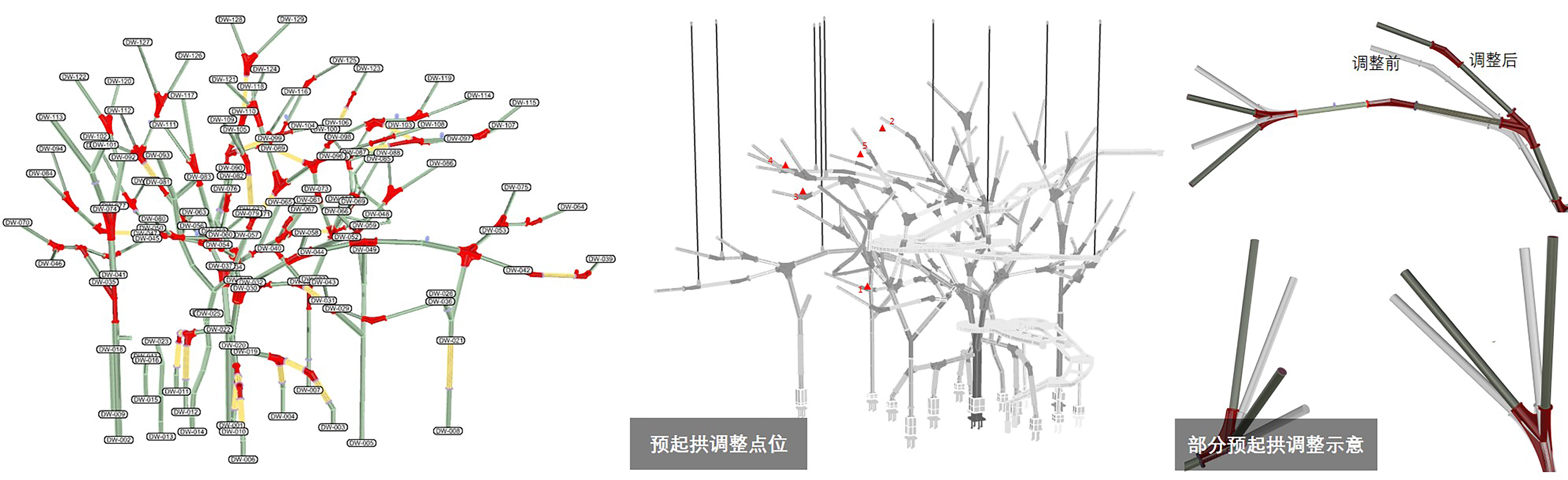 The arrangement of the main structural system of the Wonder Tree installation is inseparable from the intended functional, formal, and aesthetic requirements of the design. XISUI Design engaged LuAnLu (the structural consultant) to participate in discussions from the initial design phase. The entire structural system is divided into the following components:
