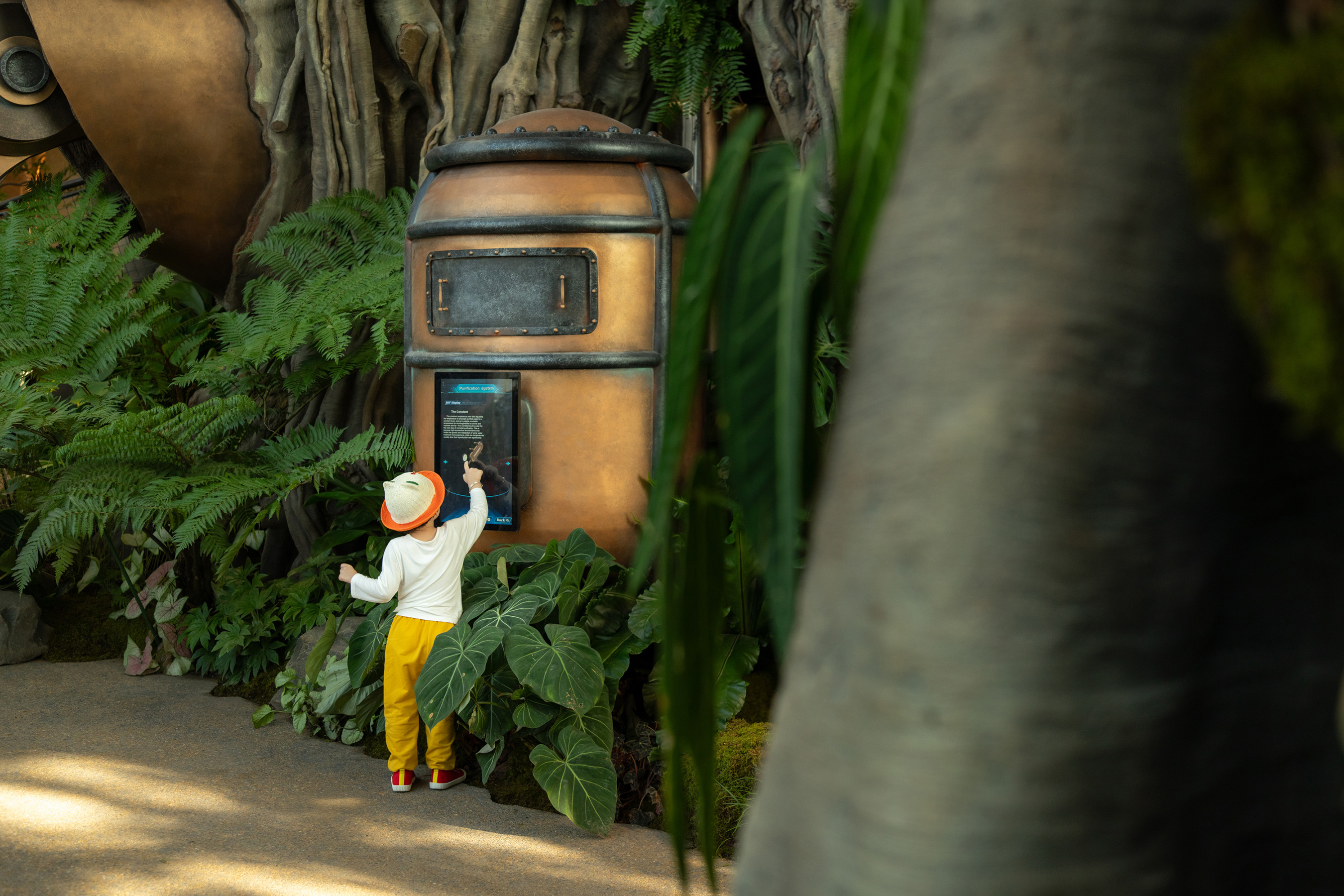 The L1 entrance of the Wonder Tree appears from the outside as a great tree hollow gateway, where metallic machinery and entwined roots merge organically. Upon entering, the interior space of the L1 is designed as the energy core of the Wonder Tree. To sustain Earth’s ecology, the Wonder Tree collects and stores countless plant seeds, using its own sap energy to create a long-term preservation environment for them. Bringing this narrative to life, THE RING · GARDEN CITY has partnered offline with Chongqing Natural History Museum. Over six months, expeditions were made to Heilongjiang, Ningxia, the Greater Khingan Range, and Xishuangbanna, collecting hundreds of rare seed species. Through interactive displays, visitors are allowed to closely observe and learn about these precious life-forms.
