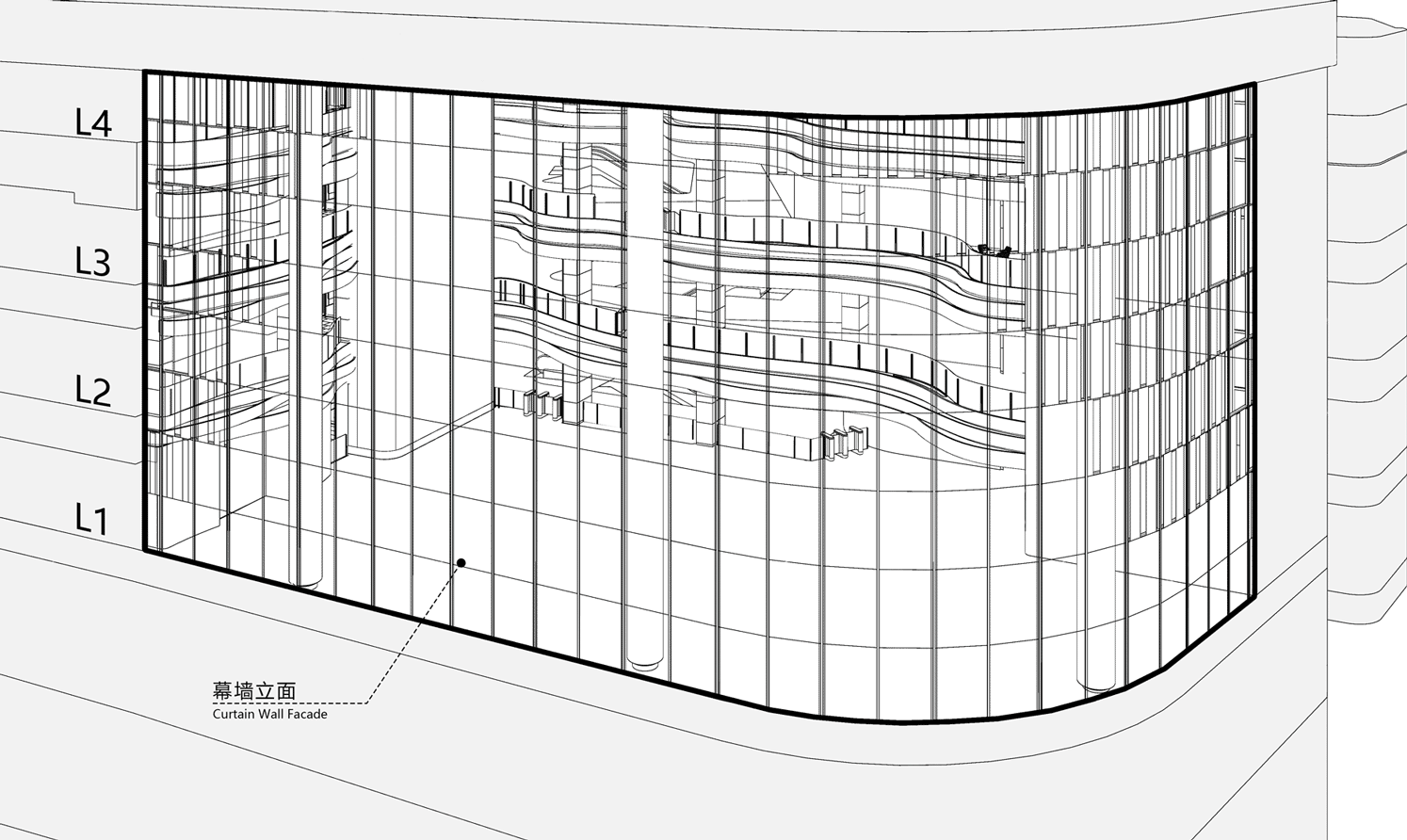 ④ Suspended Structure: Making full use of indoor ceiling structural beams to supplementally hang certain branches, thereby reducing the ground structure's spatial footprint.