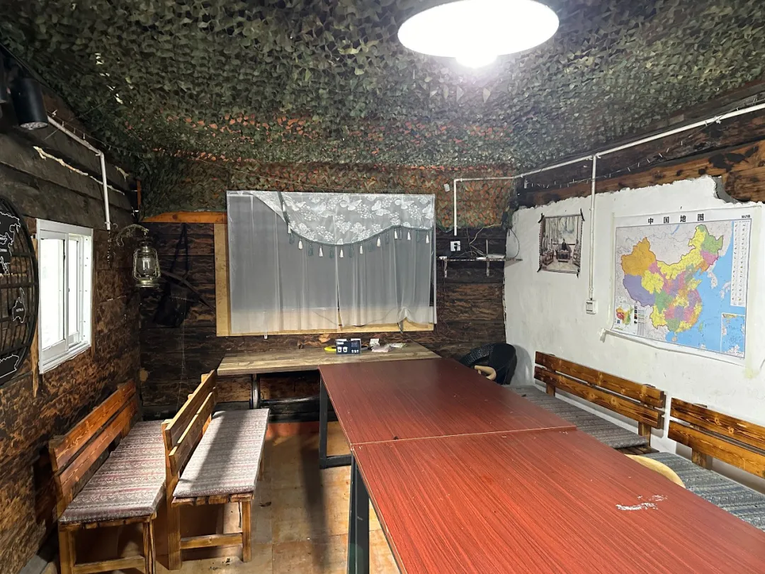 受制于六万元预算和两周工期,我们的改造策略必须非常务实,把钱花在刀刃上。老房子的主体木结构虽已使用多年,质量依然良好,所以我们首先拆除了屋主改造的部分,将建筑主体恢复为原始垛木房结构,这既创造了5mx5m舒适而灵活的阅读空间,又恢复了檐下灰空间,同时也保护了当地传统建筑风貌。由于屋顶下房顶的移除,我们拆除了失去承重功能的中柱,保留了十字木梁用以安装护眼灯管。