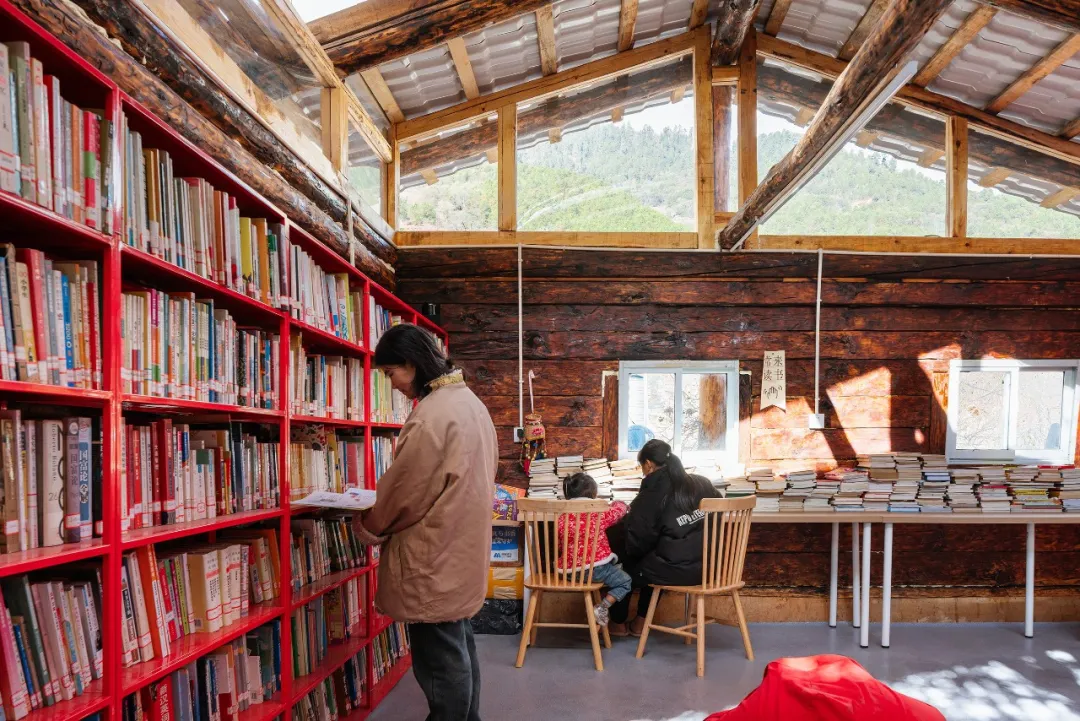此外,贡山县于2020年刚刚脱贫,生产生活水平较低,本地儿童的教育条件十分有限。生于本地的甘文勇先生为了让家乡的孩子们接触到外面的世界,走出大山,将自家的一组老房改为公益爱心书屋供孩子们阅读学习。自2016年书屋建成至今,“半山花语”爱心书屋一直是秋那桶村乃至方圆140里唯一的乡村书屋,从开始的100册到如今藏书已过4万册。