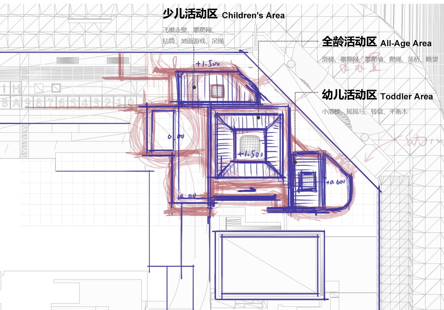 Contemporary children’s spaces are designed to meet the needs of today’s children, yet they can find unique and intimate memory resonances in traditional spatial compositions and cultural elements. For instance, Kongming lanterns and sloped tiled rooftops... These cultural symbols, which have transcended time and history, yet are cherished across generations, now appear in contemporary people’s vision and daily life in new, artistic, and participatory forms. Here, grandparents, parents, and children bond through these shared cultural memories within an inclusive intergenerational environment that promotes family companionship and participation. Though time shifts, there is no alienation born of the passage of time that forces people to passively adapt. This is what I aim to explore in this design: the care, acceptance, and inclusiveness a space can convey underpinned by collective cultural memory.