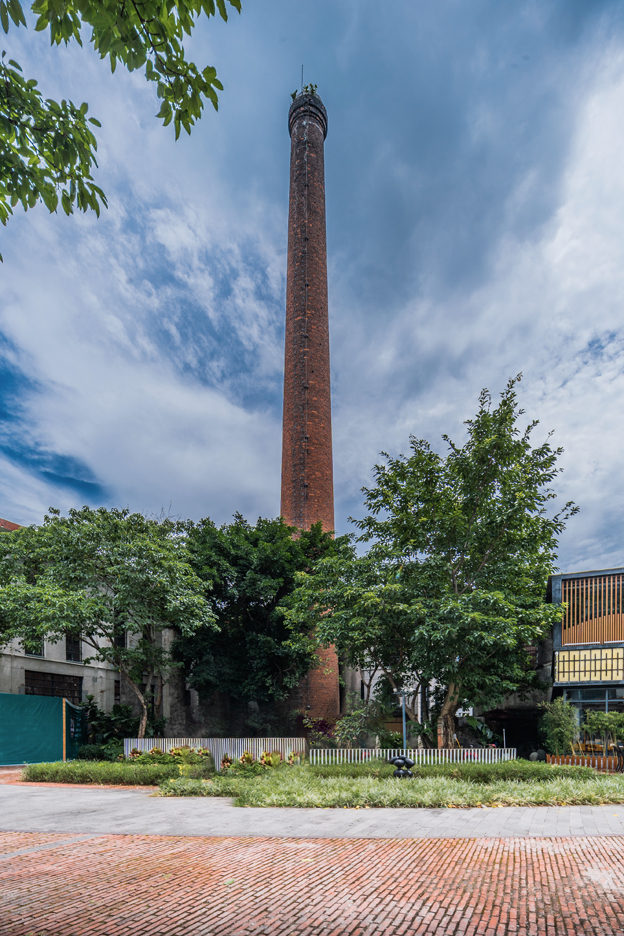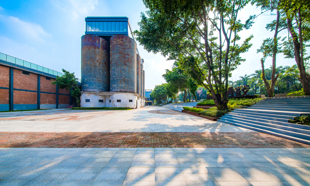 规划鳒鱼洲文创园的之初,建筑师和景观设计师是就决定要保留大水塔、大烟囱、旧海关大楼、旧饲料厂、旧粮油加工厂等一大批建造于上世界70~90年代的老建筑以及现状的超过500棵现状榕树和其他乔木。如今在鳒鱼洲,仍有多达6处历史建筑,33处Ⅰ、Ⅱ保护建筑。我们在保持着当年的历史建筑风貌的基础上进行改造,打造出一个富有工业遗址风貌、又具备现代艺术气质的文化创意园区。