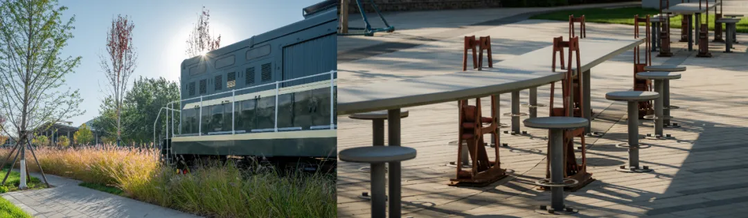 On the site, stones from the old cement plant have been repurposed into retaining walls, their rugged texture silently embossed with the imprints of the past. Components salvaged from abandoned warehouses have been granted an artistic rebirth, now punctuating the greenery as captivating focal points. These thoughtfully preserved "traces" infuse warmth into cold historical objects, forming a poetic bridge that connects the past with the present.