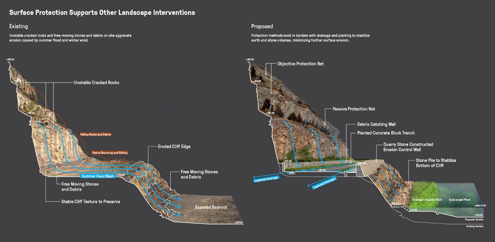 2017年与2020年,SWA先后赢得兴发水泥厂矿山生态修复区与兴发水泥厂改造即金隅兴发科技园景观设计竞赛,全程负责设计落地。在长达七年的设计建设过程中,始终贯彻生态优先及工业遗址再利用的可持续设计理念。该项目在2024年获得北京城市更新最佳实践项目,此次再次入选北京市生态修复典型案例,既是对项目生态价值与社会效益的高度认可,也是对SWA长期深耕生态修复领域的有力肯定。