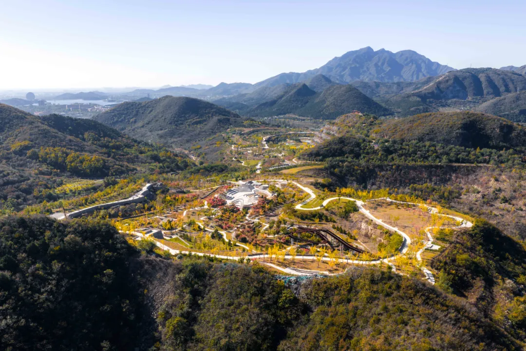 矿山生态修复区作为园区后花园,占地面积约107公顷,分为一采区、二采区和示范区。昔日的矿山,如今已成为园区不可或缺的绿色基底,与怀柔科学城的公共空间网络紧密融合。本次修复在设计、技术和管理模式上创新,其价值远不止于生态平衡——它既为科研人员提供了激发灵感的工作外延,也为区域经济转型升级与可持续发展目标,注入了鲜活的绿色力量。