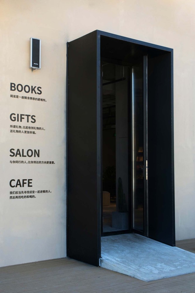 书店主入口和外摆区的景墙由混凝土现浇而成,混凝土自然的表面肌理给人粗粝又有温度的感受。高低错落的墙体和植物营造出的过渡空间,将外界的纷扰统统阻隔在一方墙外。当读者由外至内穿过这一区域,内心也从外界的暄闹自然转换到阅读所需的安静里。