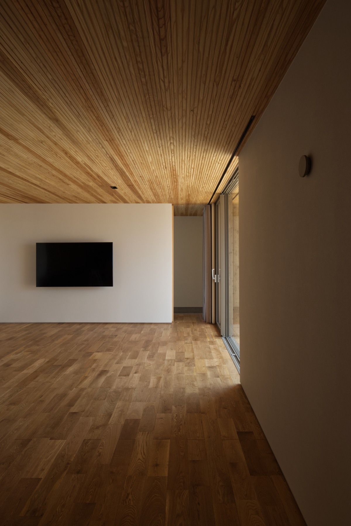 This house follows the shape of the surrounding terraced fields and is made up of a combination of multiple volumes of different sizes. By deciding the layout while taking into consideration the relationship with the road and neighboring land, we ensured a view from each room while maintaining privacy. One of these volumes includes a spacious deck terrace. Sometimes it serves as an outdoor living room and sometimes as an observation deck, and plays a role in connecting the surrounding environment with the family's daily life.