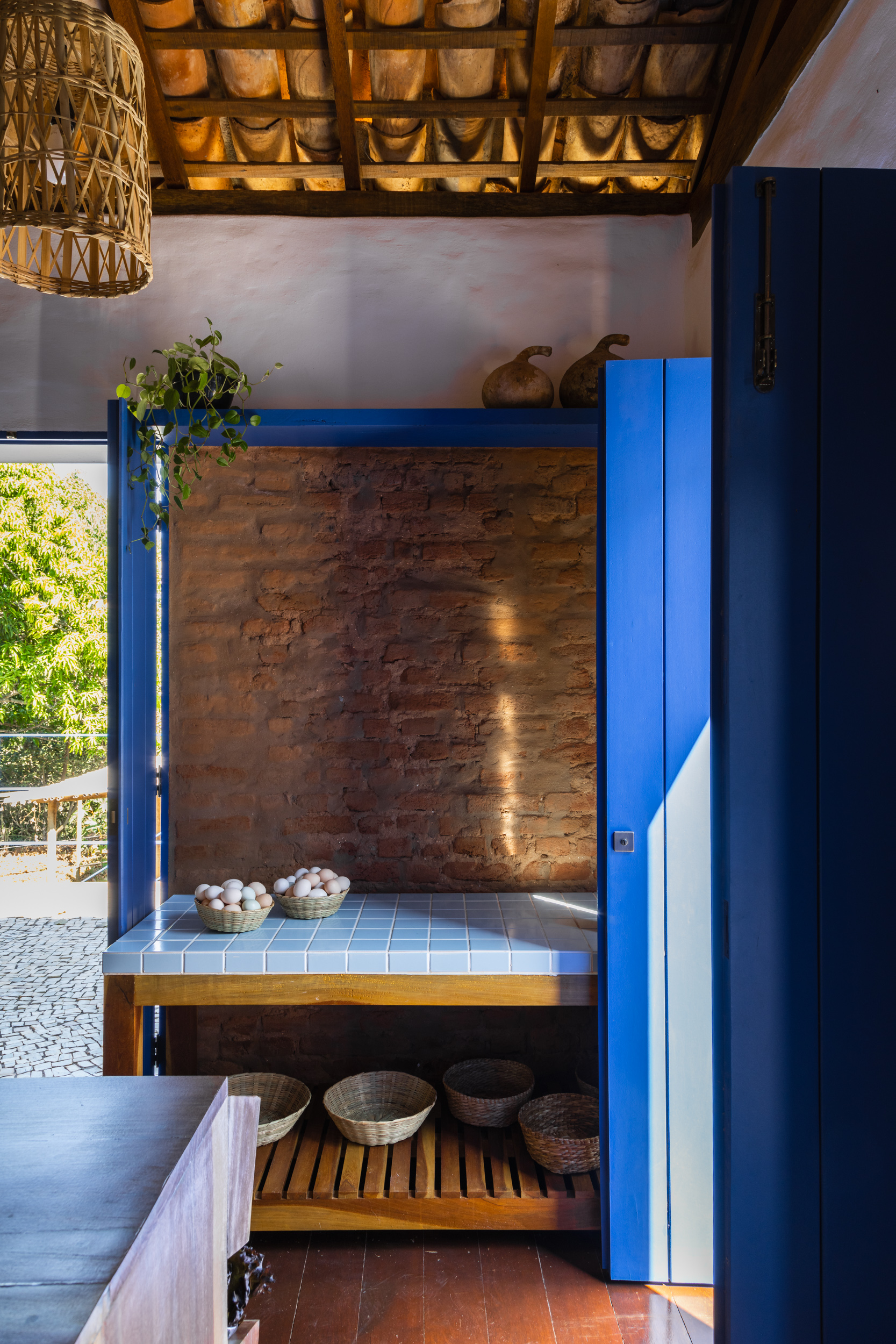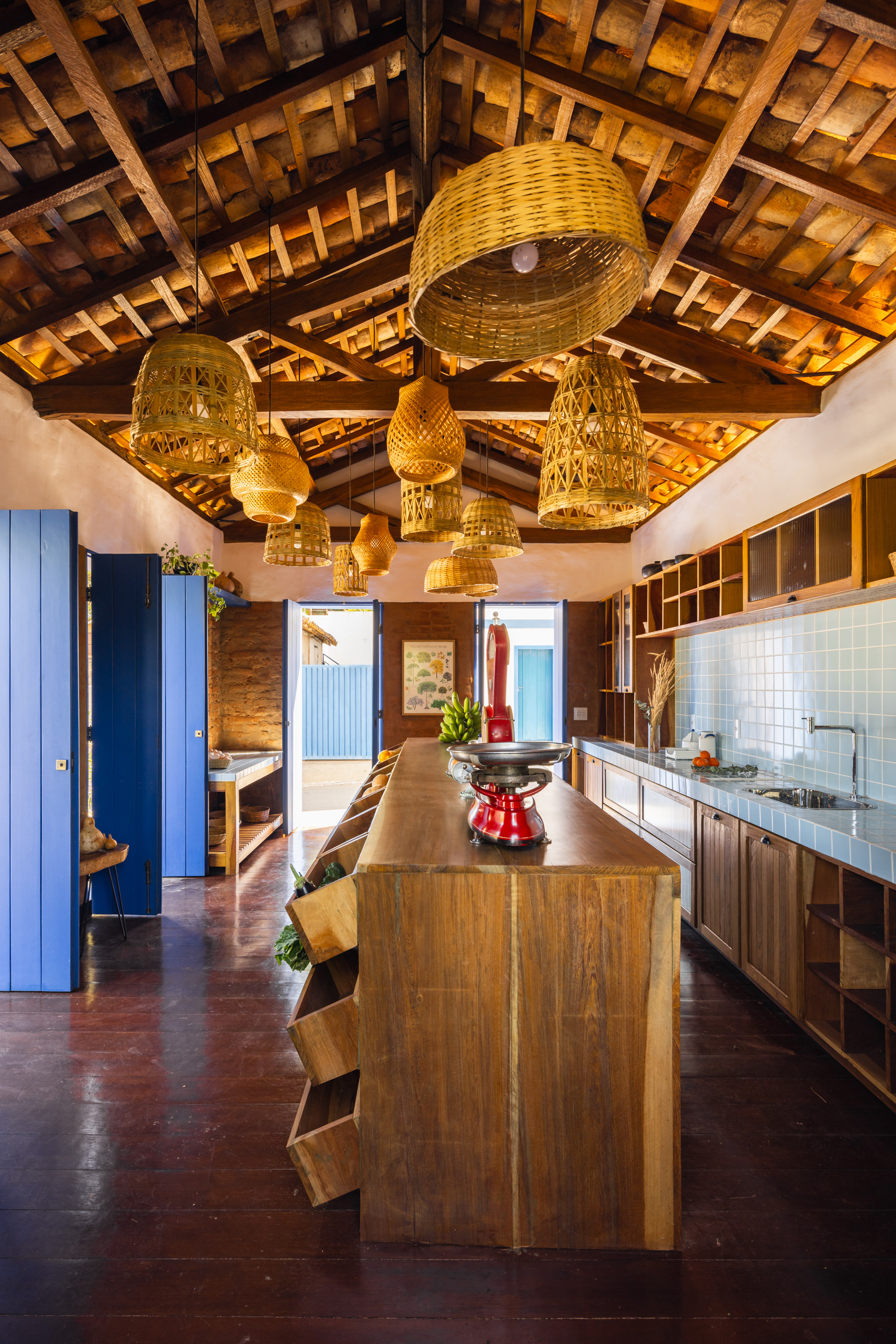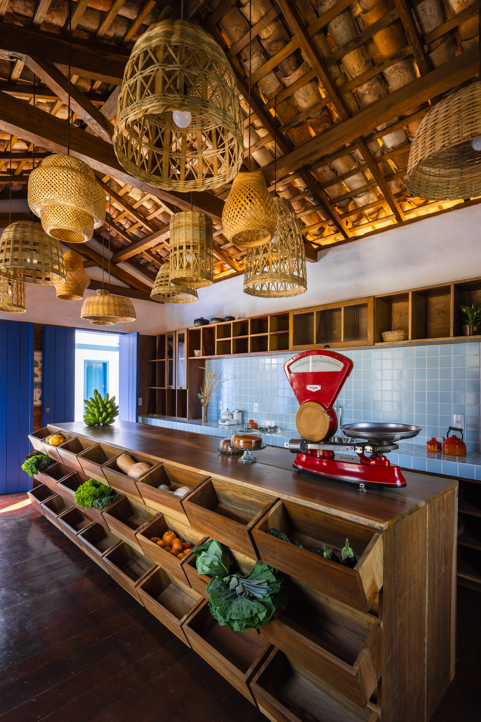 We approached this requalification project through three distinct fronts: restoration of the original elements, architectural expansion, and interior design. We started by highlighting the historic architecture, removing a PVC ceiling to reveal the timber trusses and colonial roof. We stripped the walls to expose the solid brick used in the original construction and restored all the woodwork, including windows, flooring, and trusses.