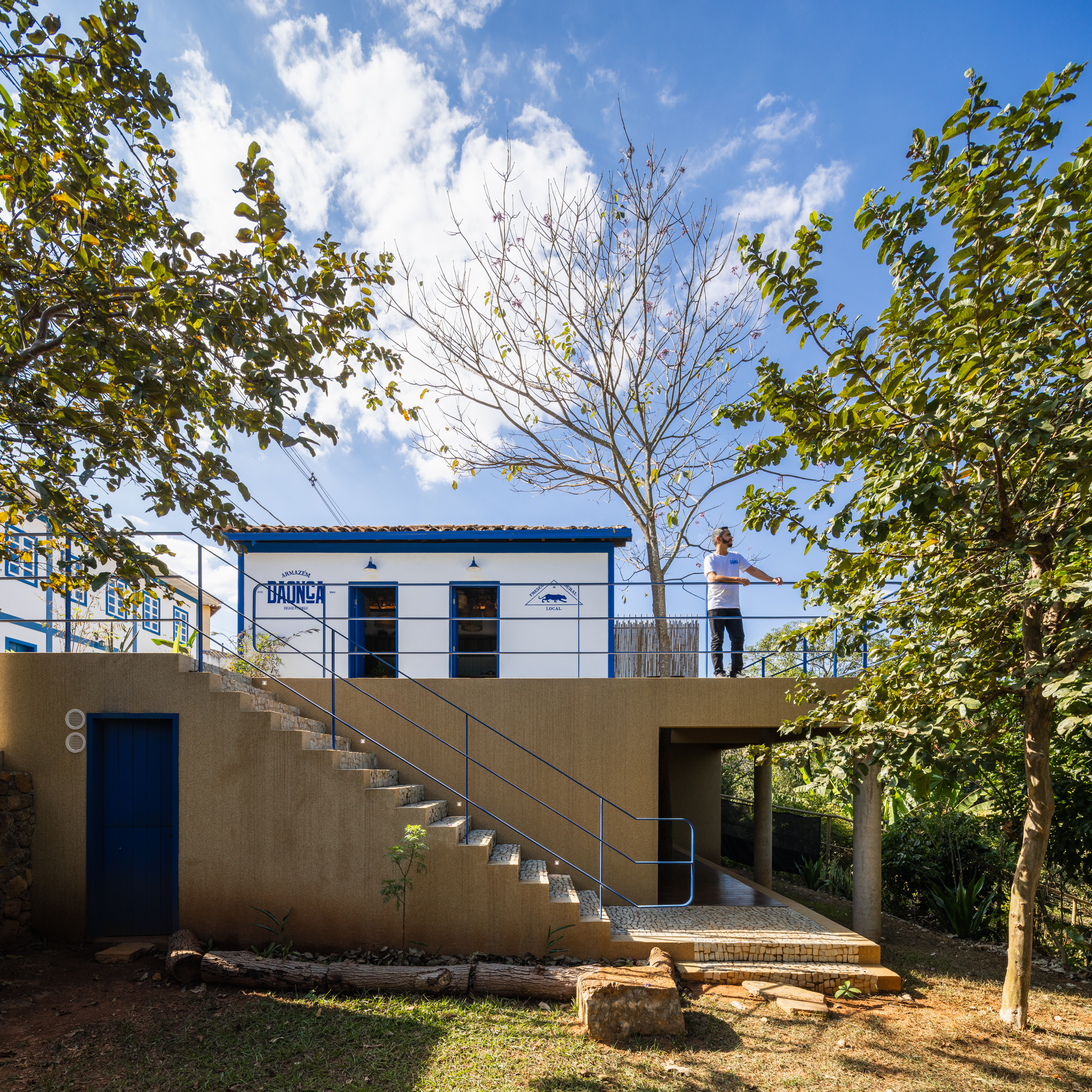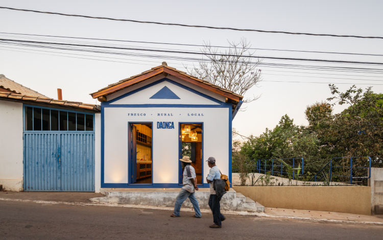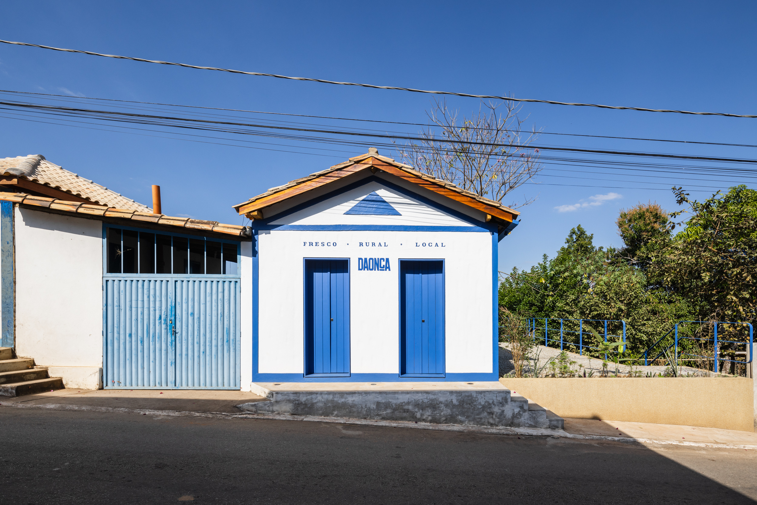 The warehouse is a commercial and service space located in the small town of Onça do Pitangui, in Minas Gerais. It offers products from agroforestry systems and handicrafts made by local small-scale producers, as well as serving coffee and regional baked goods to both residents and tourists. The project occupies a small building from the early 20th century. The construction, adjacent to a colonial house, has two floors: the ground floor, which sits slightly above street level, and a basement that adapts to the slope of the land. The property is located on the right side of its lot, at the entrance to the town, just before the town hall square.