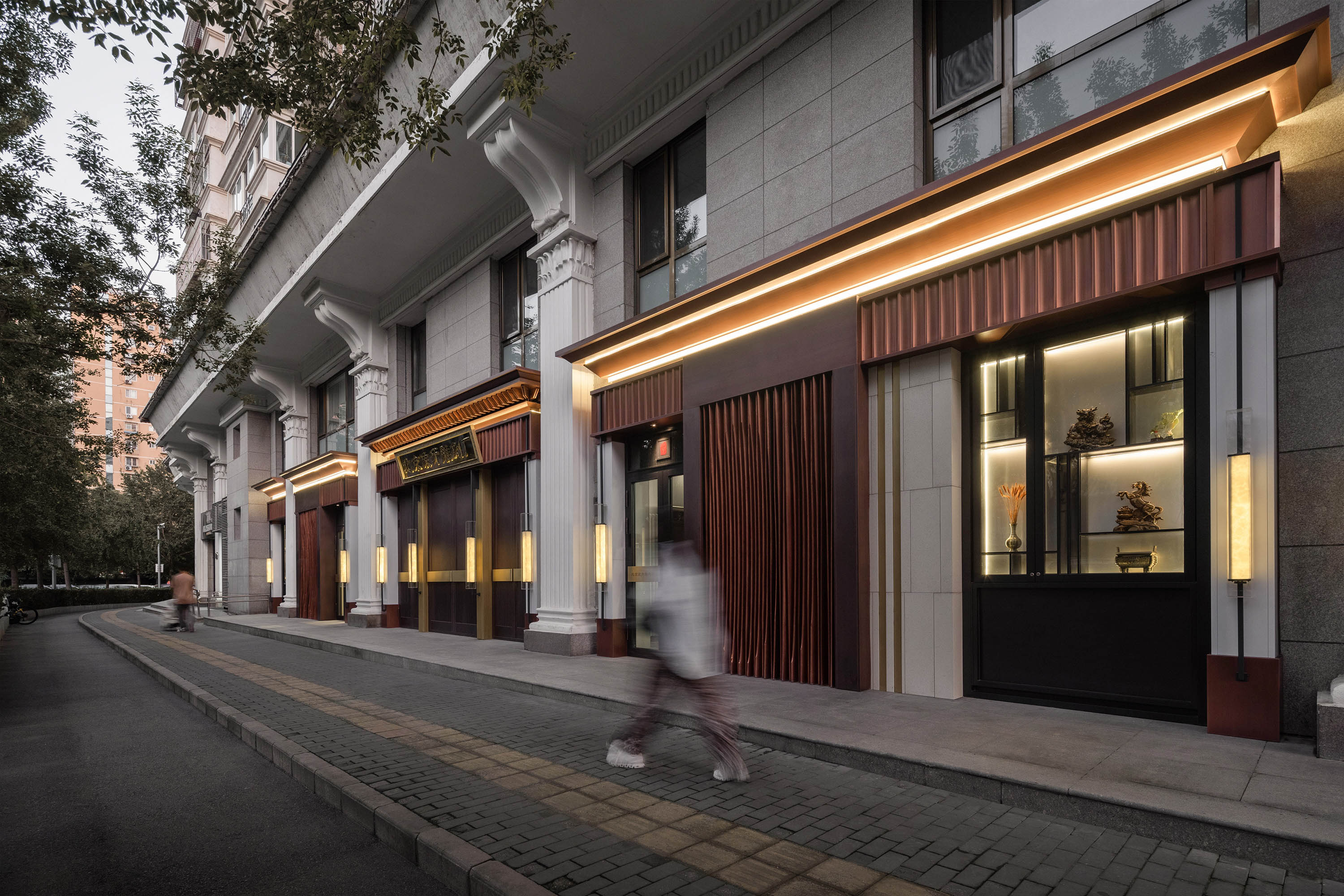 the facade reinterprets Beijing’s historic mammoth ivory carving exhibition with contemporary elegance