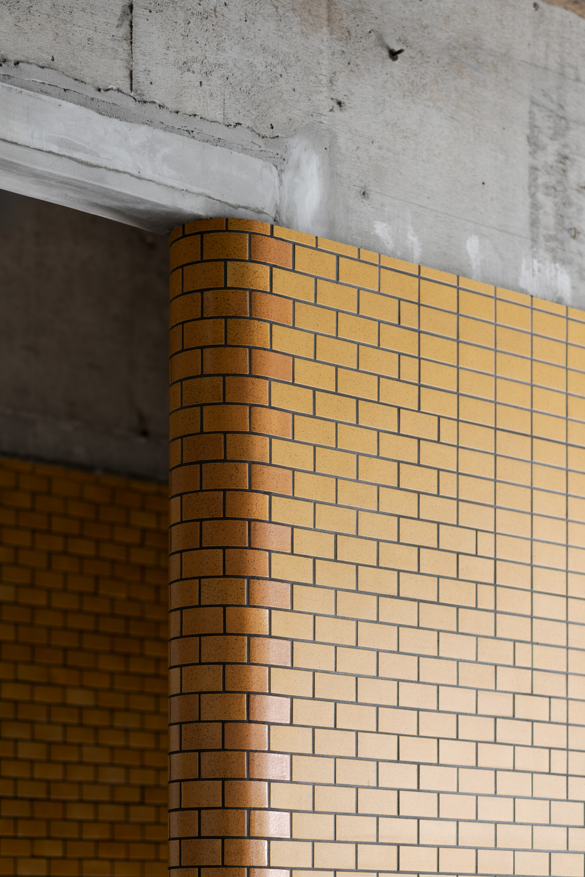 并且,通过将瓷砖要素不仅传染到入口周围,还传染到办公空间的柱子和家具的一部分上,使整个空间内外形成深厚的关系。